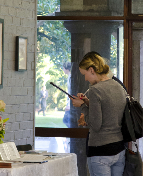 ![]() 真善忍美展观众在留言簿上写下他们的感动 |