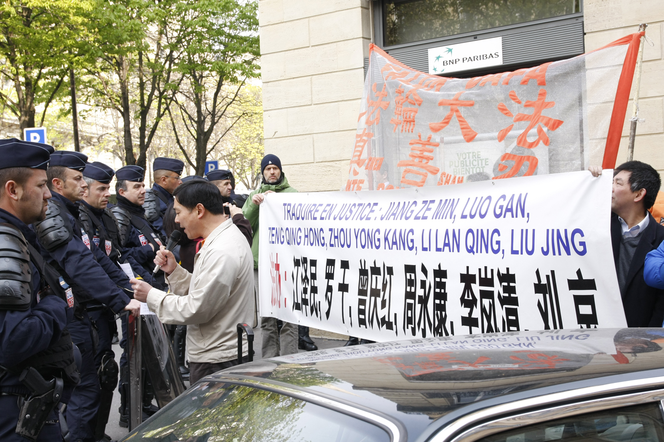 法国法轮大法协会计划于三月二十五日至二十八日,即习*近*平访问法国期间,在中共使馆对面,举办反中共迫害的和平集会,主要内容之一是法办在对法轮功的迫害中血债累累的元凶首恶江泽民、罗干、周永康、刘京、曾庆红、李岚清等。然而,三月二十六日上午,巴黎警察局长给法轮大法协会发来命令,禁止在中共使馆对面集会,而要求到几百米以外的地方集会。