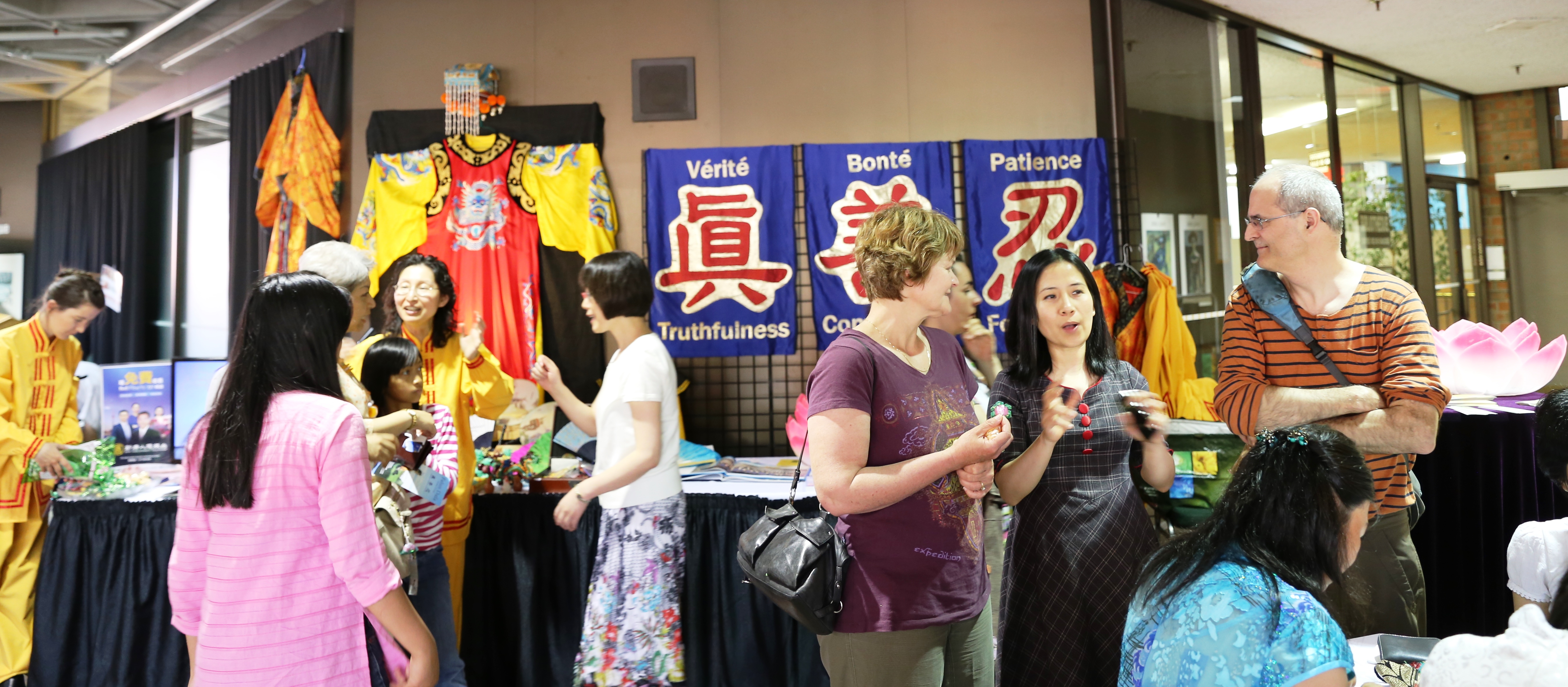 ![]() 法轮功学员参加加拿大首都地区加蒂诺市政厅内的“体验亚洲”大型文化展 |