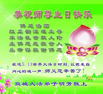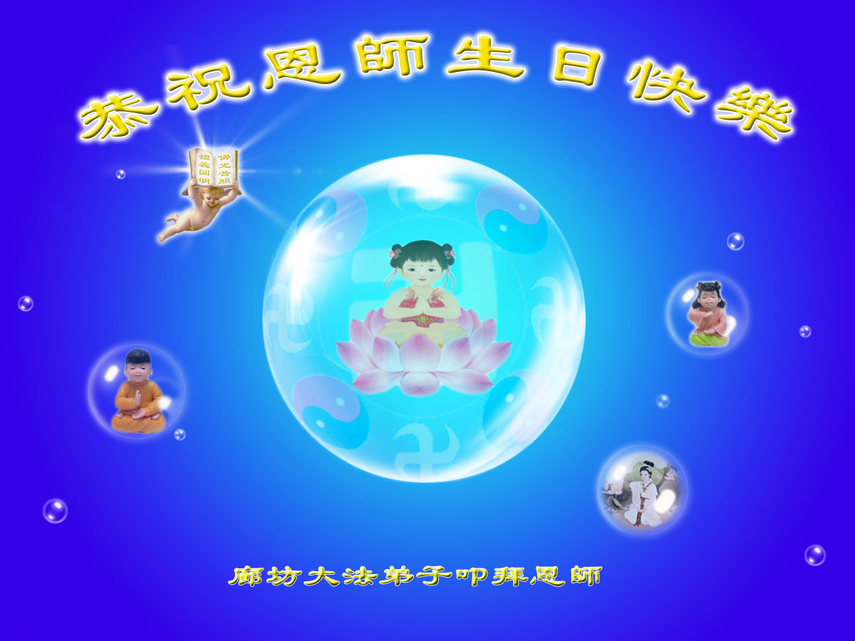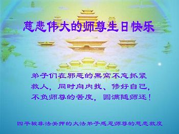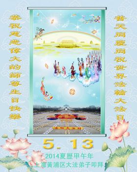 又一年的世界法轮大法日来临,在这普天同庆的时刻,恭祝我们慈悲伟大的师尊华诞!庆祝世界法轮大法日!