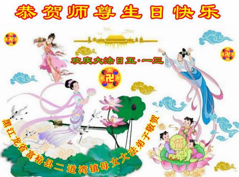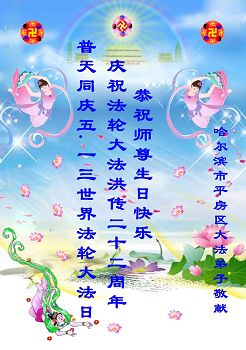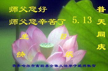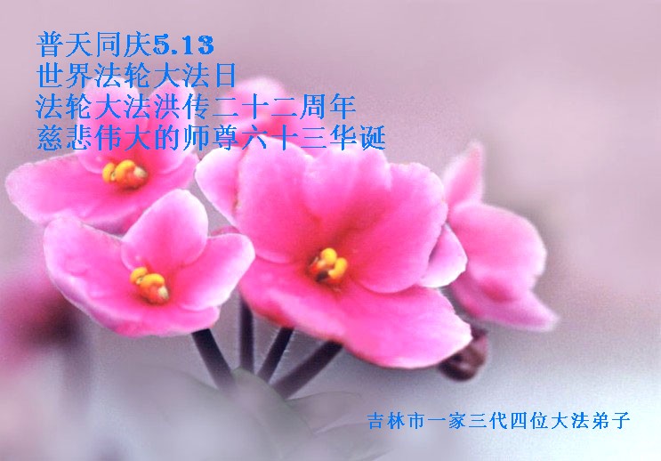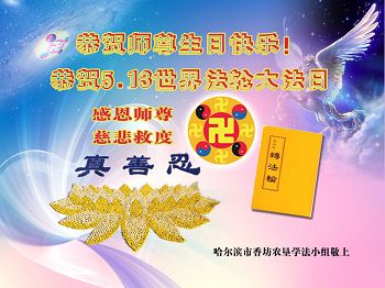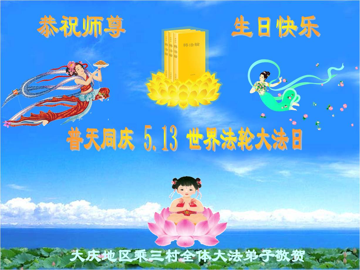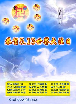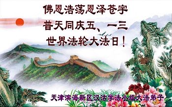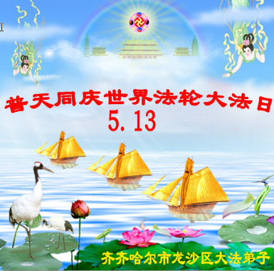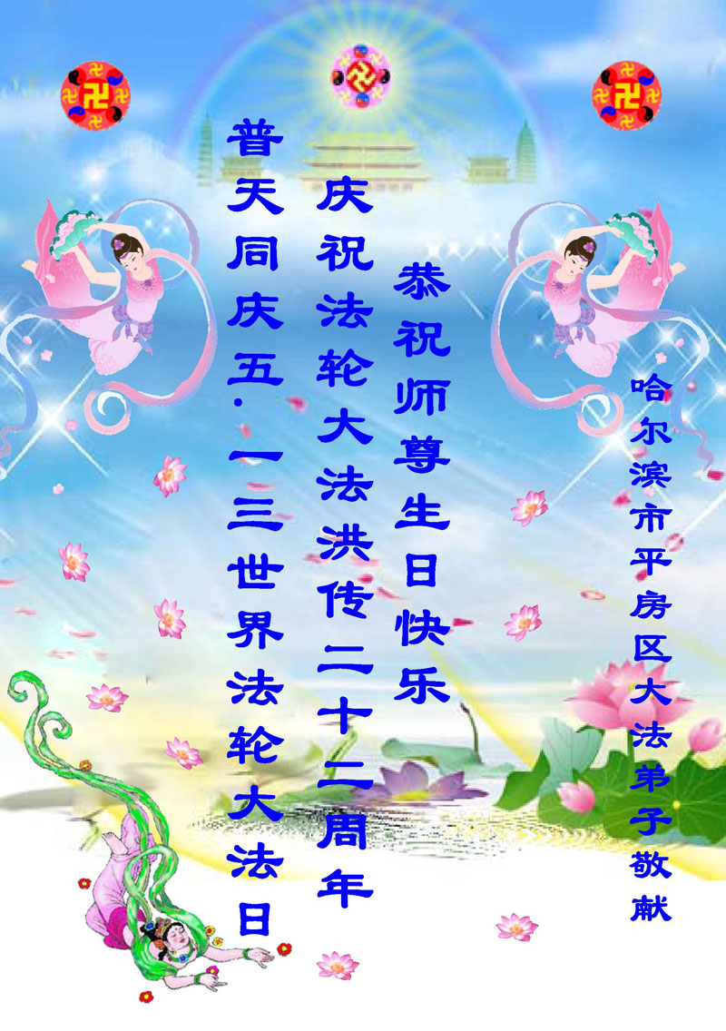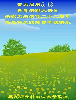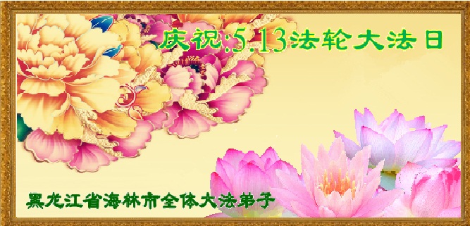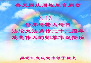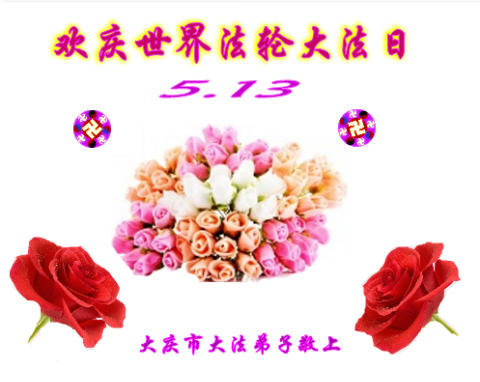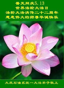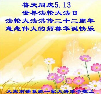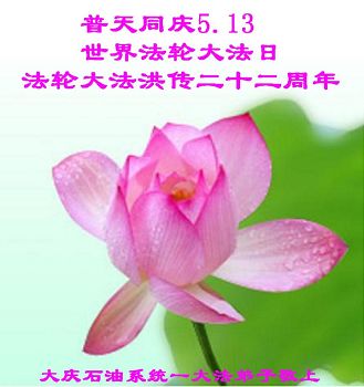 黑龙江大庆石油系统一家大法弟子恭庆5.13世界法轮大法日!恭贺法轮大法洪传二十二周年!