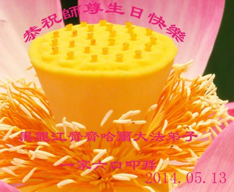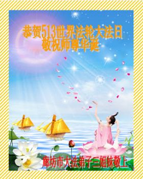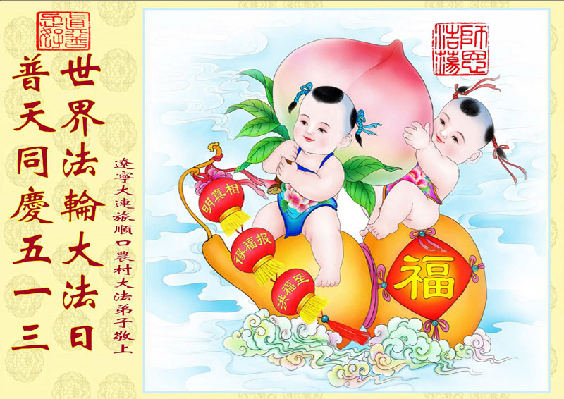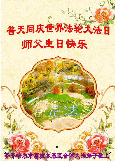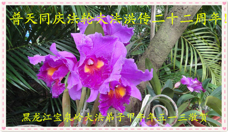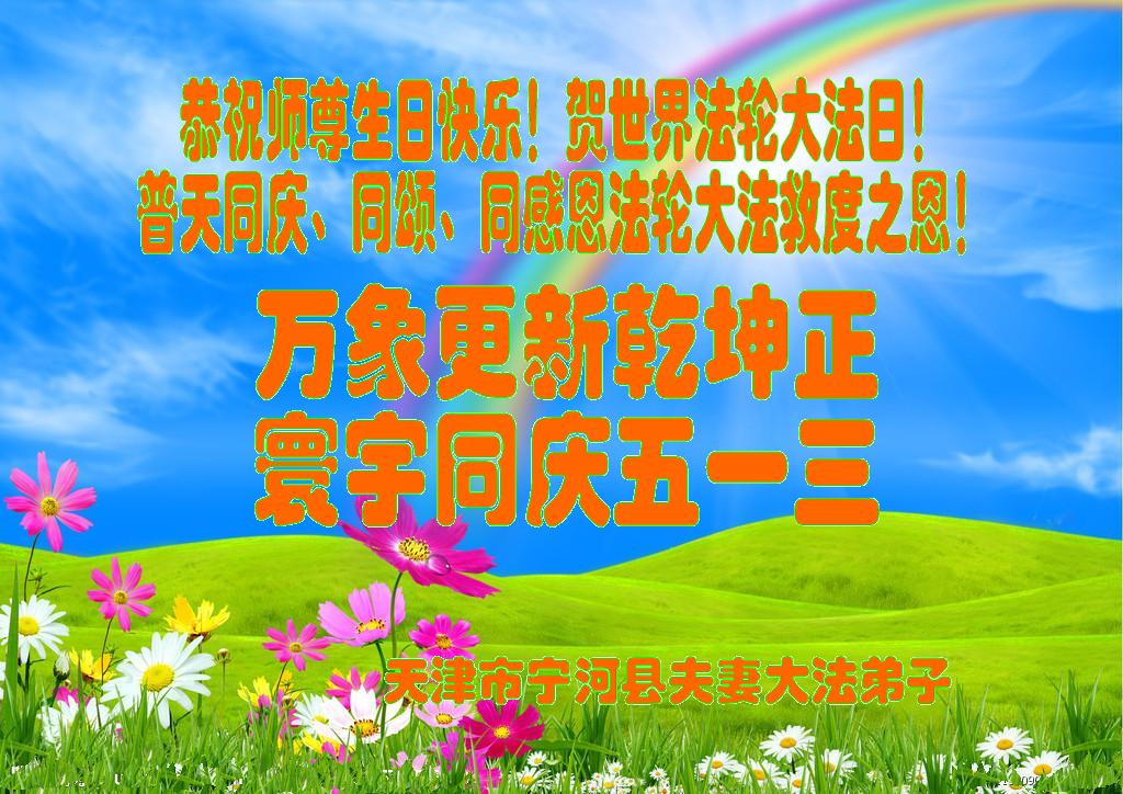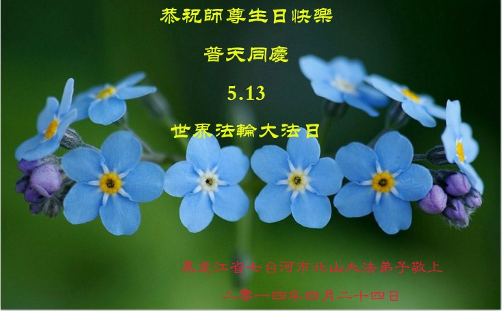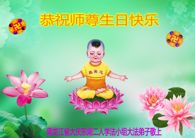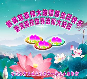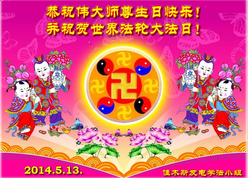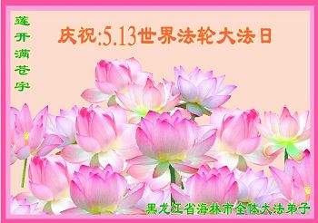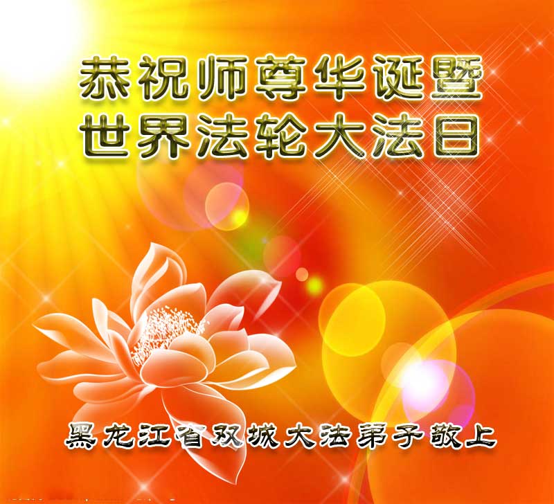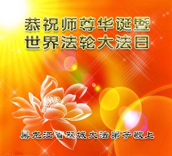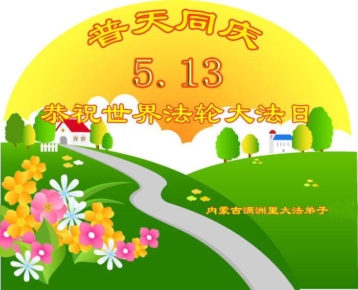 黑龙江大庆石油系统一家大法弟子恭庆5.13世界法轮大法日!恭贺法轮大法洪传二十二周年!