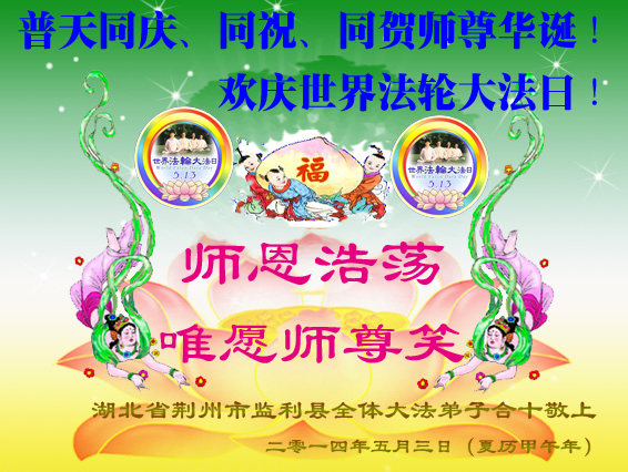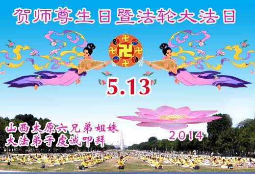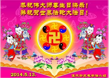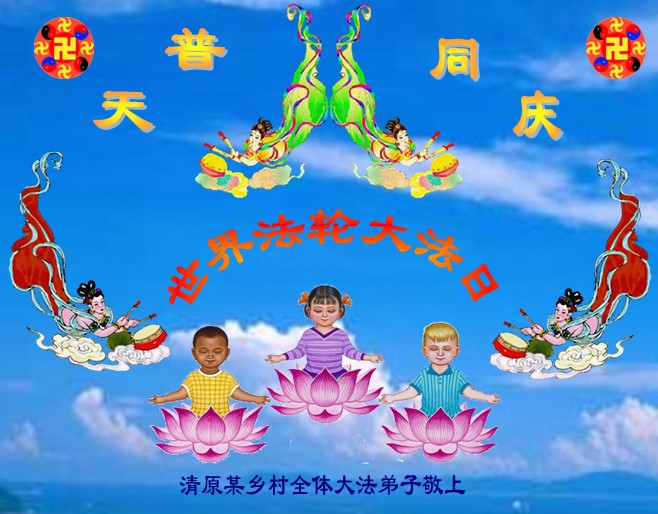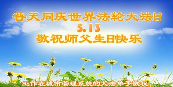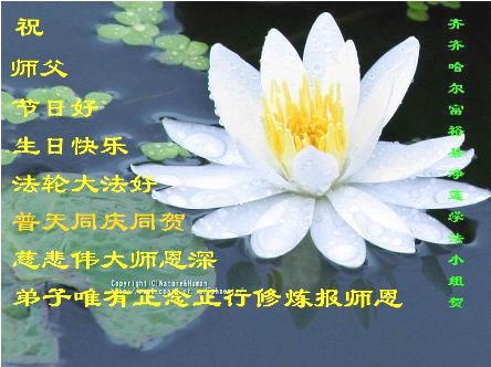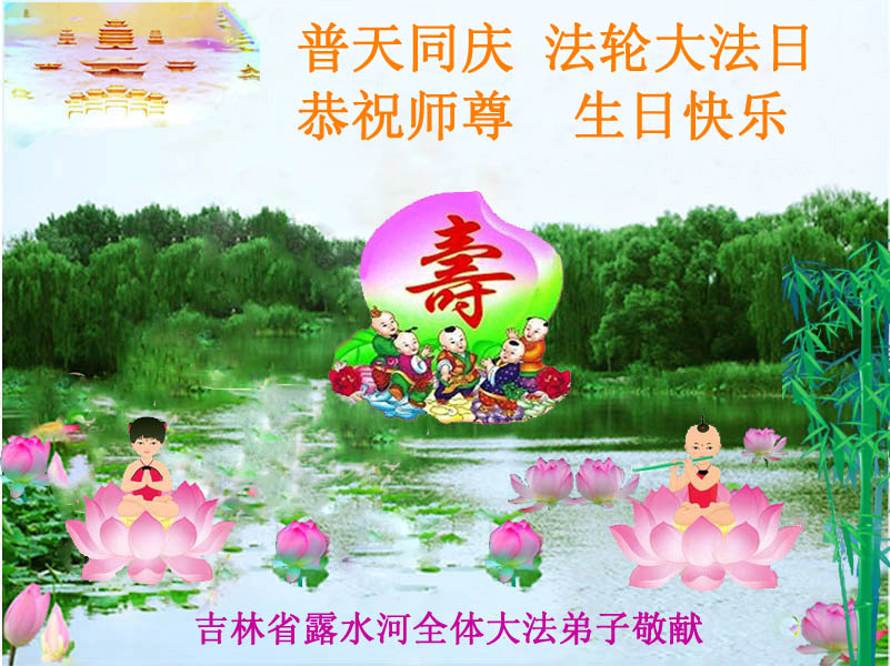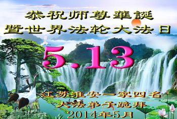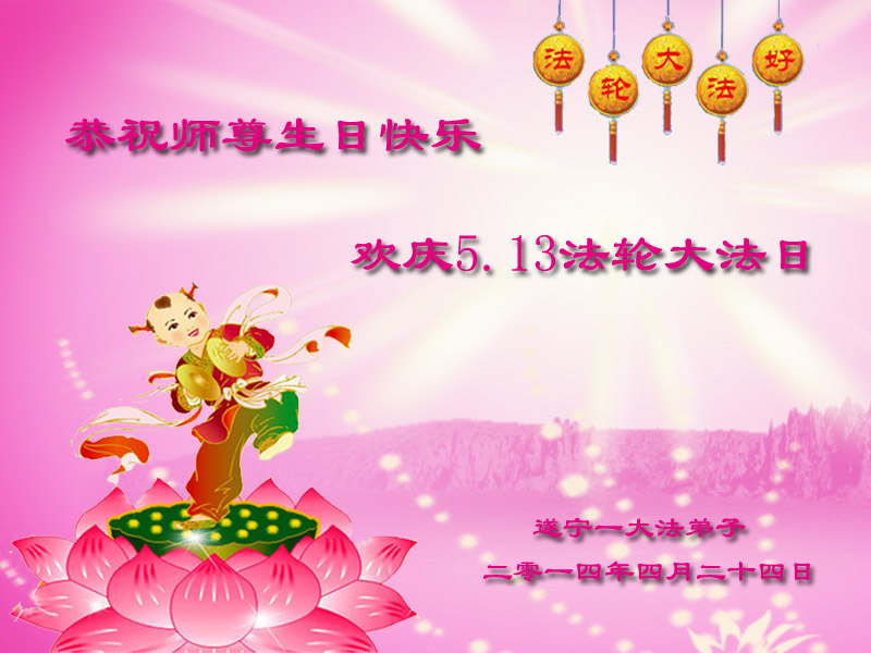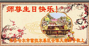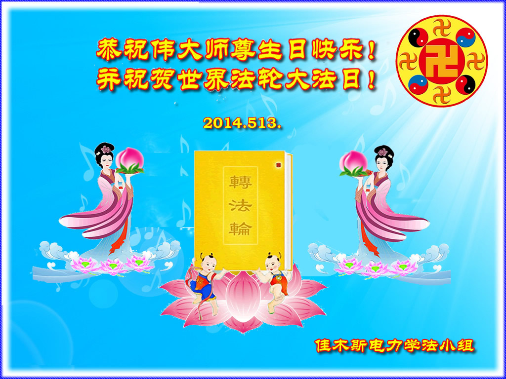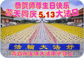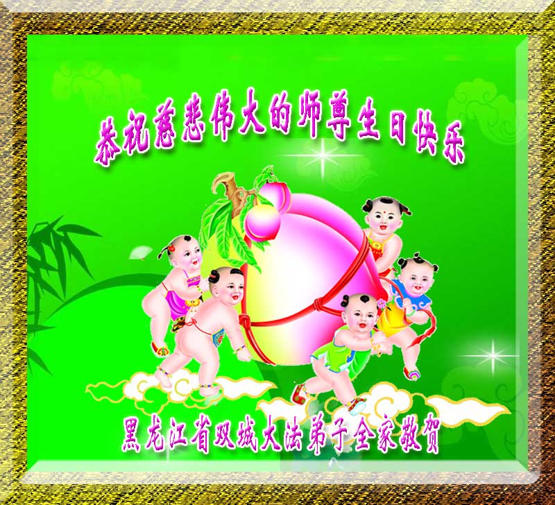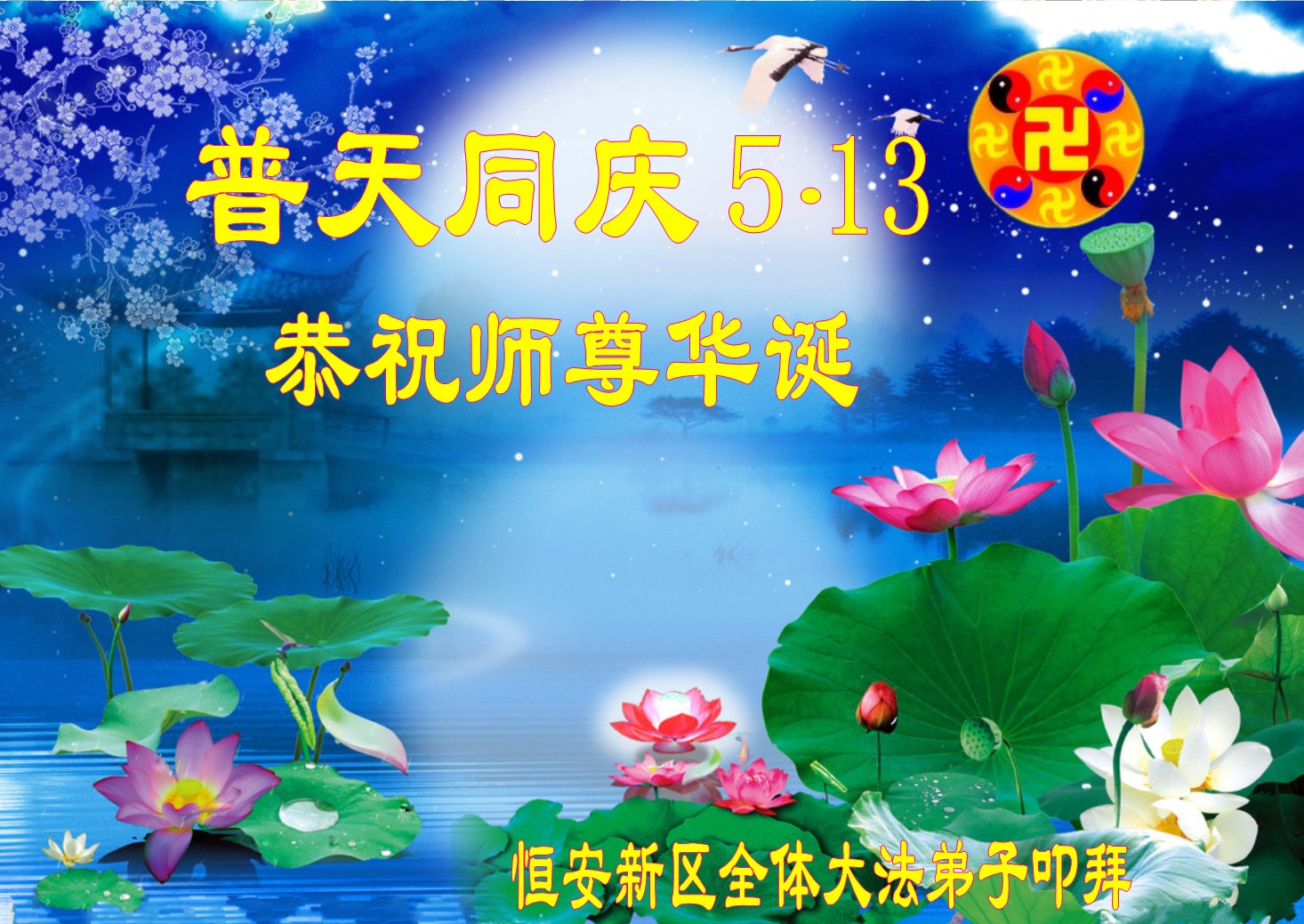 黑龙江大庆石油系统一家大法弟子恭庆5.13世界法轮大法日!恭贺法轮大法洪传二十二周年!