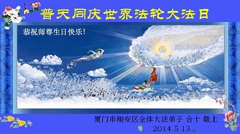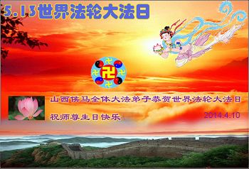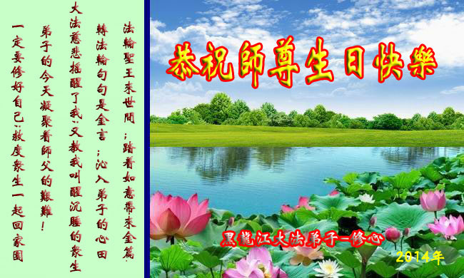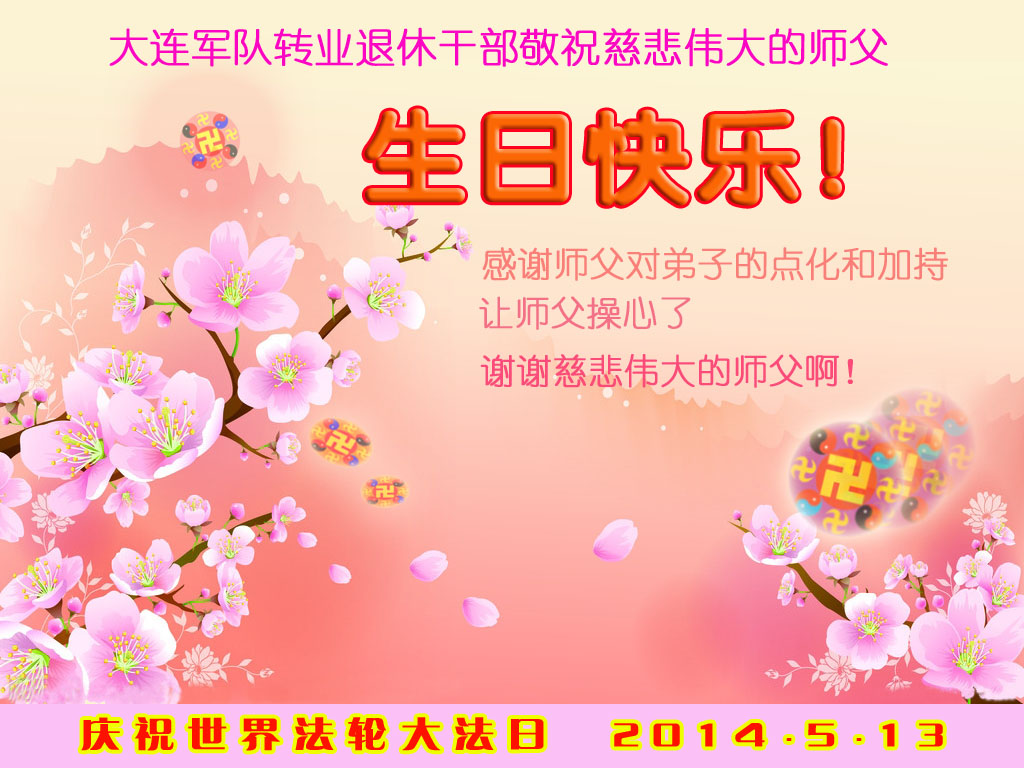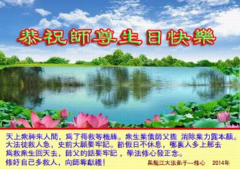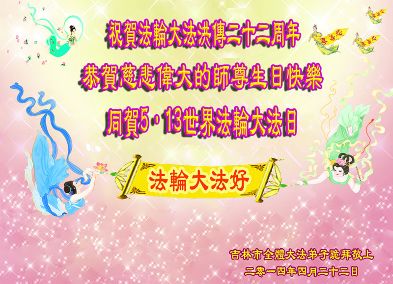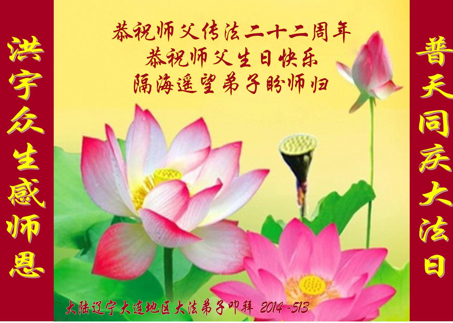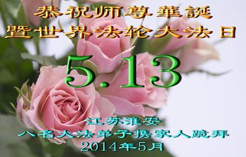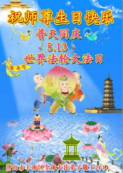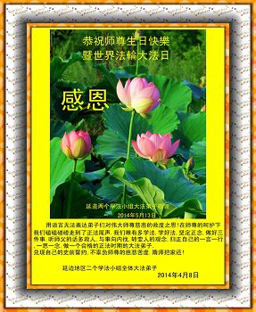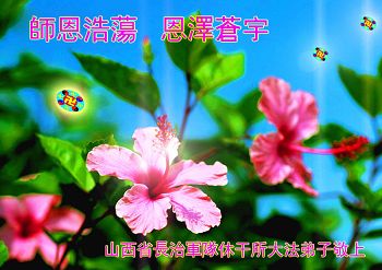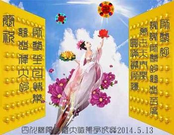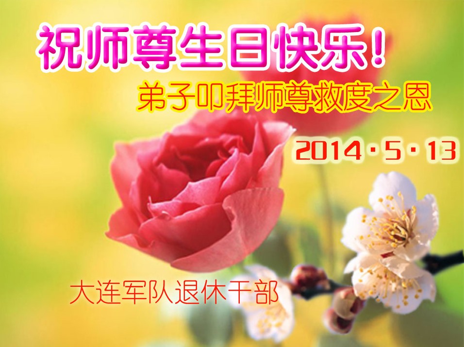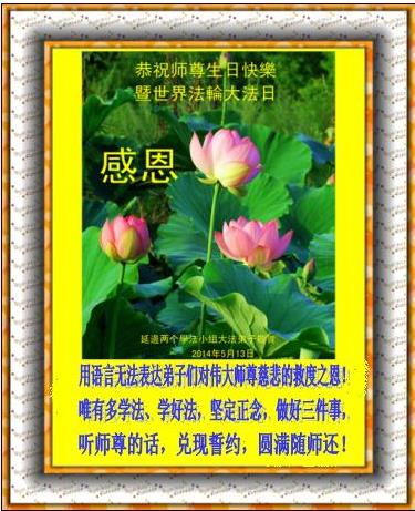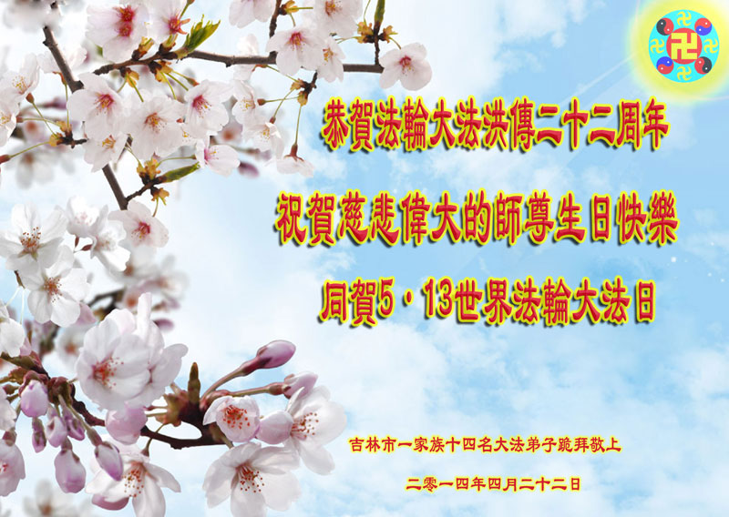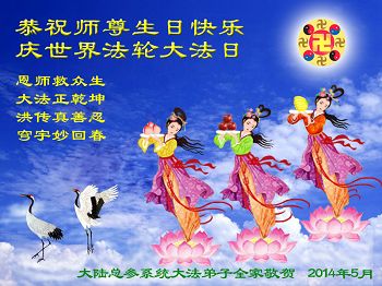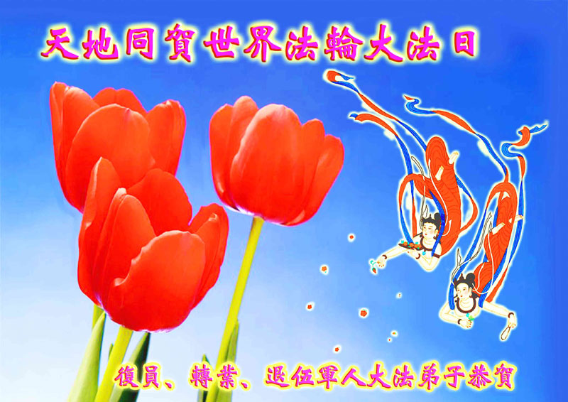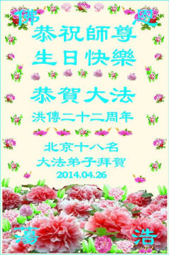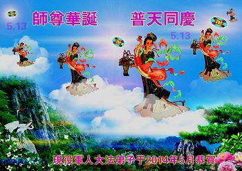 <英文版: http://en.d2s3ombhnov3zf.cloudfront.net/html/articles/2014/5/8/559.html>大陆军队大法弟子恭贺大法洪传二十二周年暨师尊华诞(15条)