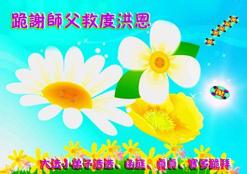 弟子跪谢师父救度洪恩!是伟大的师父把弟子从这个十恶毒世中解救了出来!想一想这个人类社会还有救吗!是伟大的师尊给了世人仅有的得救的唯一希望——了解真相,善待大法及大法弟子。否则人类早就被自己的罪恶淘汰了!令人欣慰的是现在越来越多的世人明白了真相,给自己选择了美好的未来!弟子一定听师父的话,做好三件事,争取救度更多的众生,不负师尊对弟子的慈悲教诲,不负众生的殷切希望!
