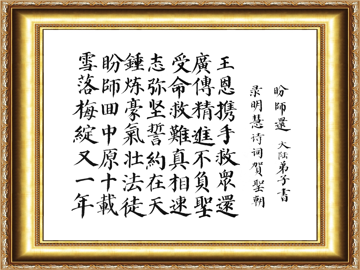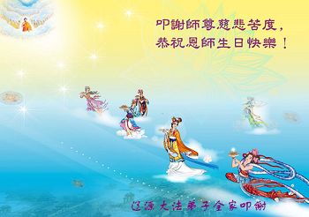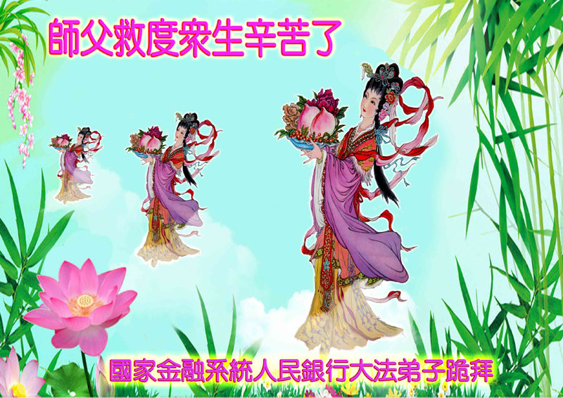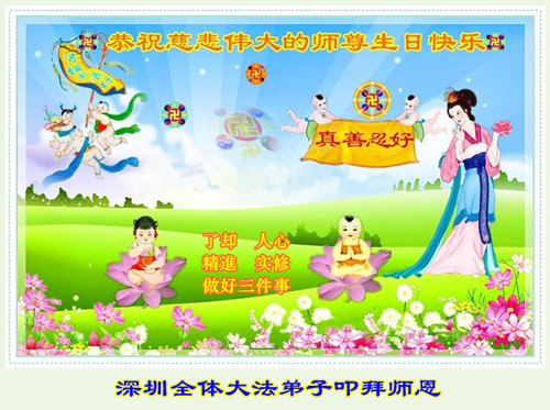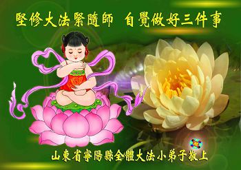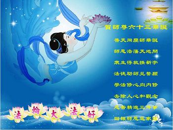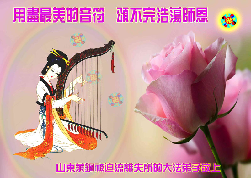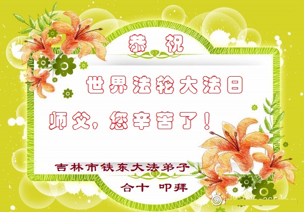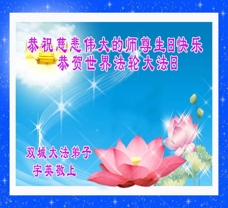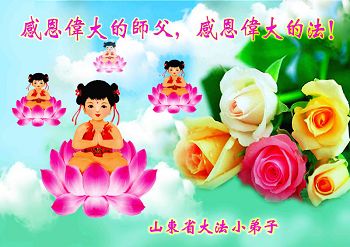 弟子谨遵师命,按照真、善、忍宇宙大法的标准衡量自己的一言一行,在反迫害中走过了十几个春夏秋冬,每一步的提高都倾注着师尊无量的慈悲与艰辛,每一境界的升华溶着师尊无私的给予与付出,是师尊洪大的慈悲将弟子熔炼成真、善、忍宇宙大法中的一粒子,使弟子体悟到了什么是真正的觉者。弟子理悟,唯有证实大法、救度众生,才是大法徒神圣的历史使命。在这稍纵即逝珍贵时刻,弟子怎敢辜负这伟大的每一天!请师父放心,弟子一定不辱使命,继续做好三件事,救度更多被邪*党-毒害的生命,唤醒他们的良知,给自己选择一个美好的未来,不辜负师尊慈悲苦度!弟子跪拜师尊!合十!