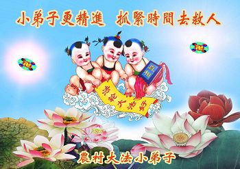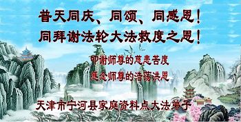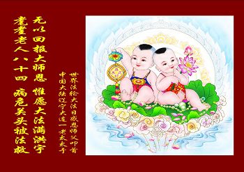 我是九六年得法的老弟子,今年七十四岁。十八年的修炼中听师父的话,把自己当作一个修炼人,坚持学法、抄法、背法和参加集体学法。我还没有见过师父,却深切的感受到师父就在身边呵护着我,使我在邪恶的迫害中坚定正念不迷失;巨难百苦中坚贞不渝不动摇;助师正法中不懈怠,跟着师父一路走过来,在这正法最后的不多的时间里更加勇猛精進,按照师父要求做好“三件事”,多救人。