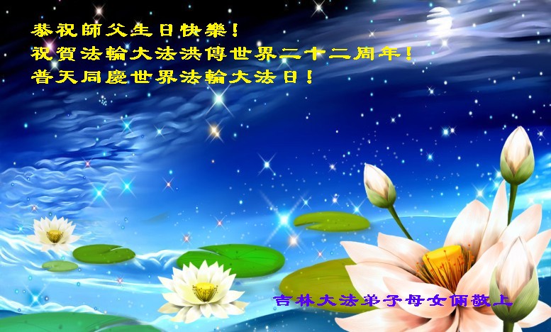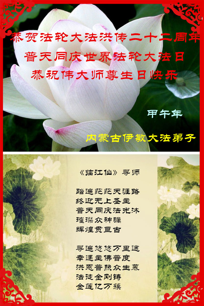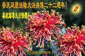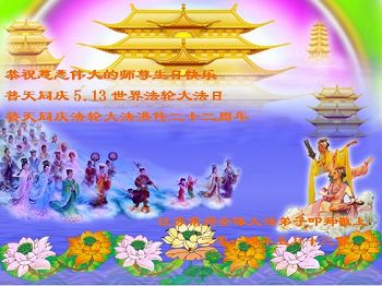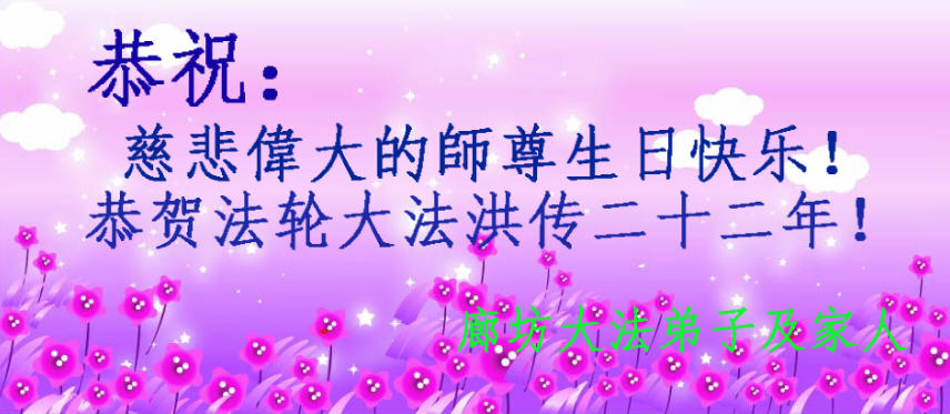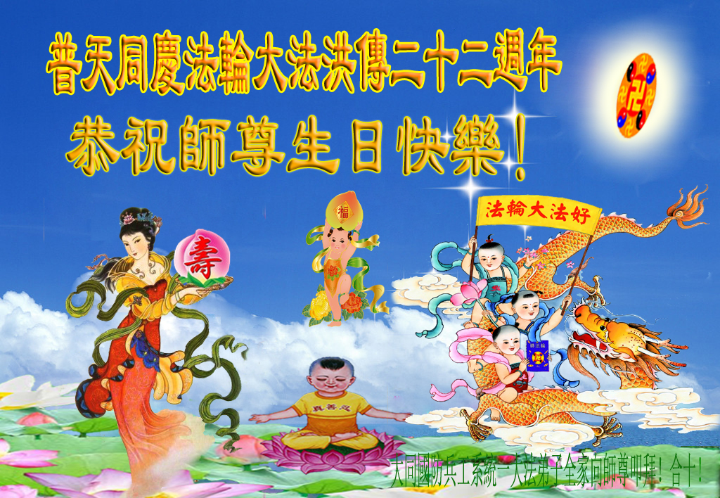 恭贺法轮大法洪传二十二周年!恭祝慈悲伟大的师尊华诞快乐!