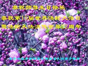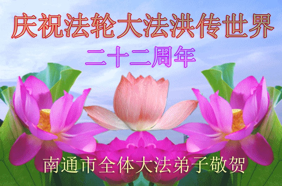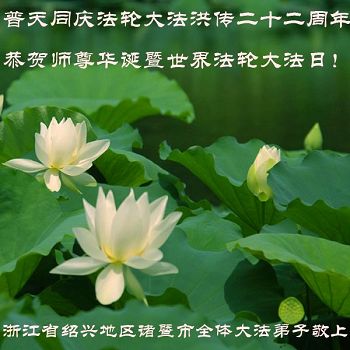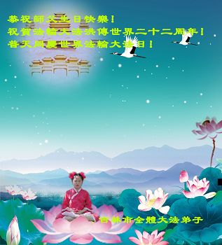 恭贺法轮大法洪传二十二周年!同庆世界法轮大法日!感恩师尊慈悲苦度!我们一定做好三件事,救度更多的众生,恭迎师尊回归祖国。