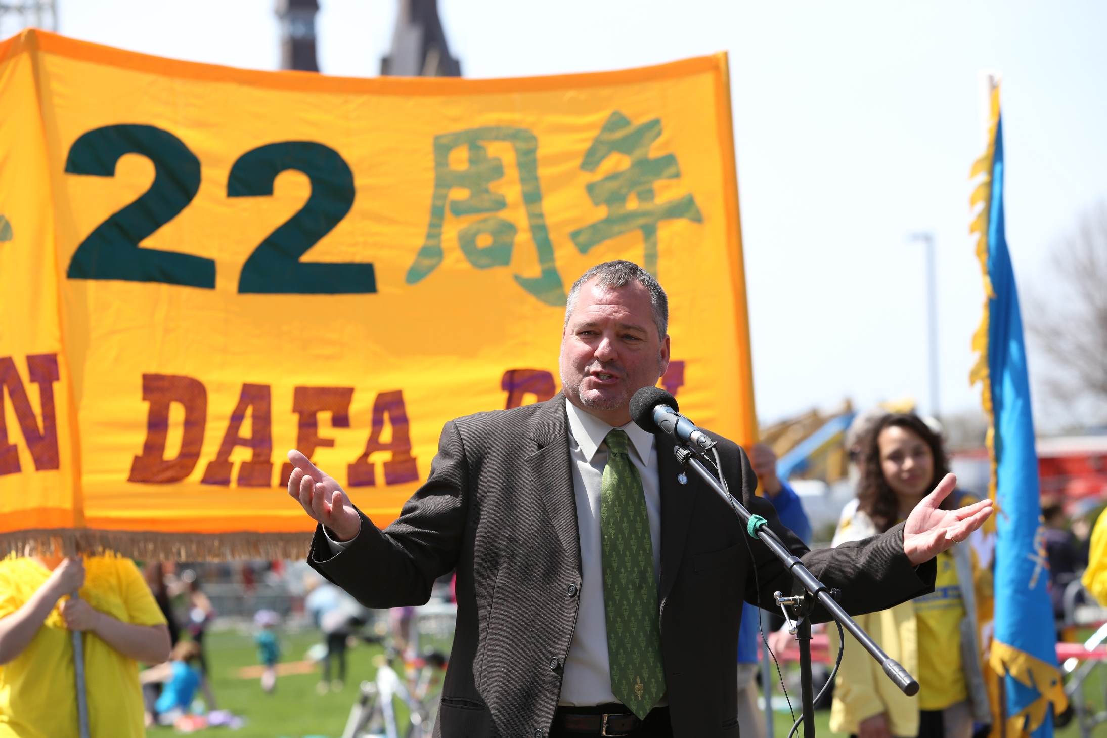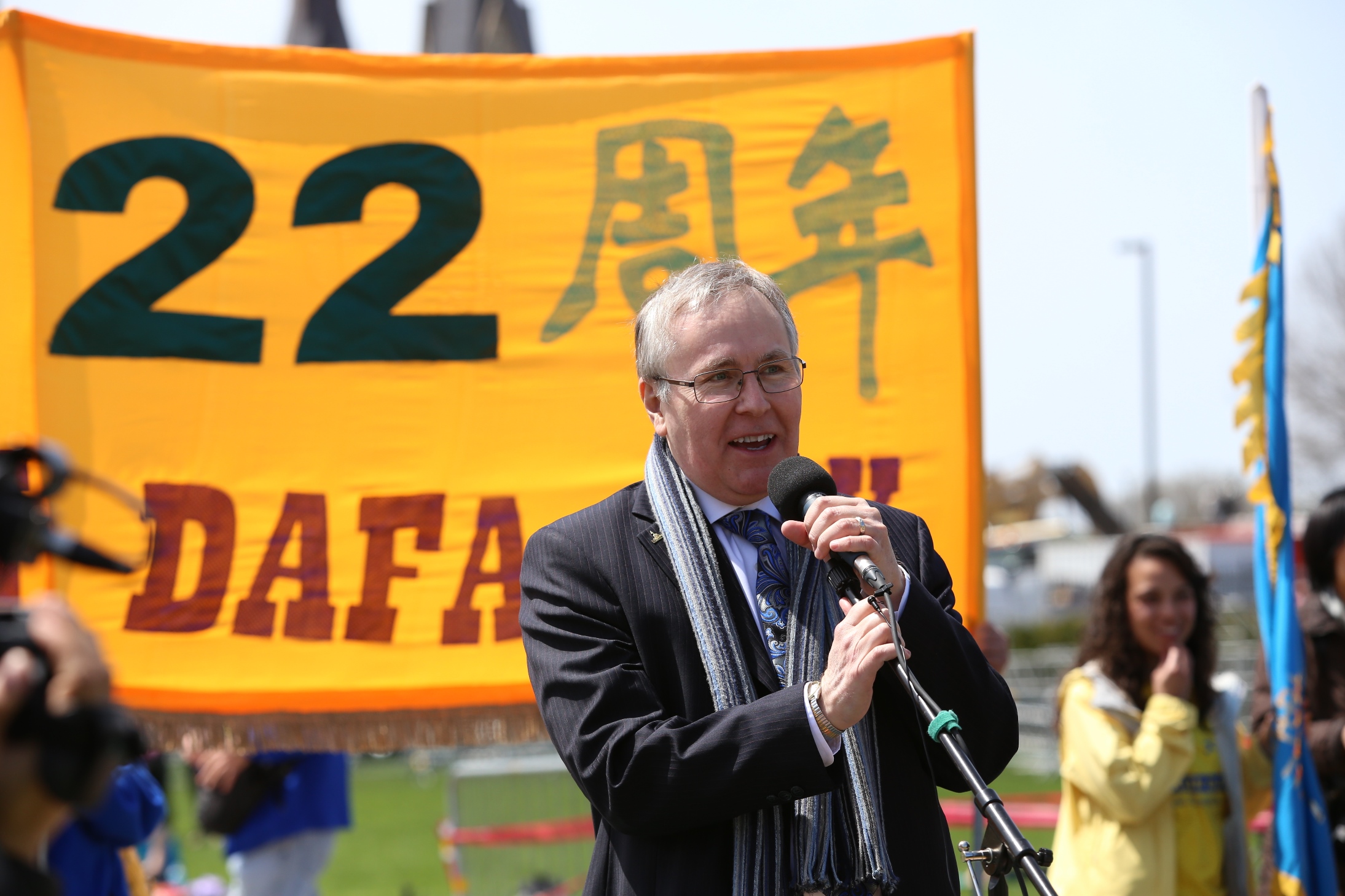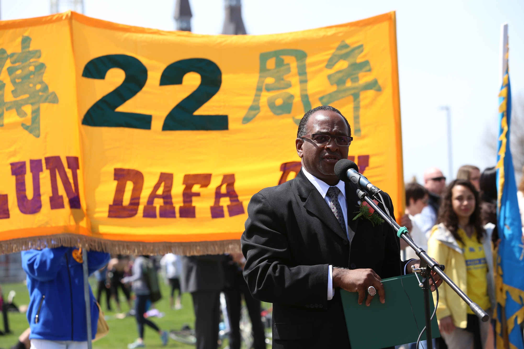 迫害之初,曾为营救法轮功学员张昆仑教授作出重要贡献的国会议员——前司法部长、总检察长考特勒议员在现场演讲中说:“我和你们一起庆祝法轮大法洪传二十二周年这一里程碑,庆祝真善忍的价值观,这不仅仅是中国古老的价值观,也是普世的价值观,真正反映了加拿大,作为一个民主国家的价值观。……我们将永远和你们庆祝我们共同的价值观和我们的共同事业。”