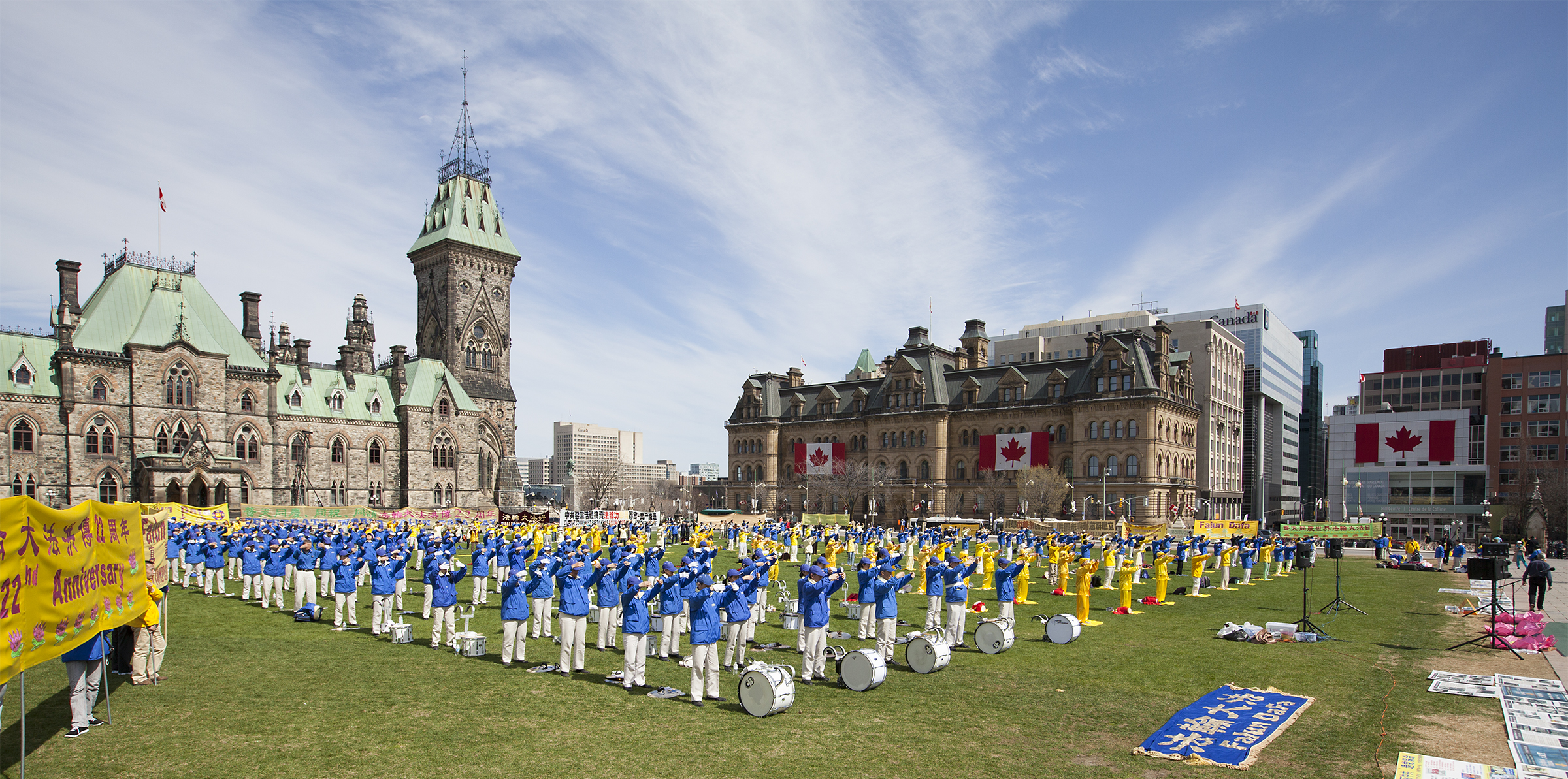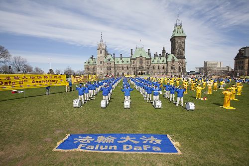 ![]() 加拿大东部城市法轮功学员在加拿大首都国会山前集体炼功 |