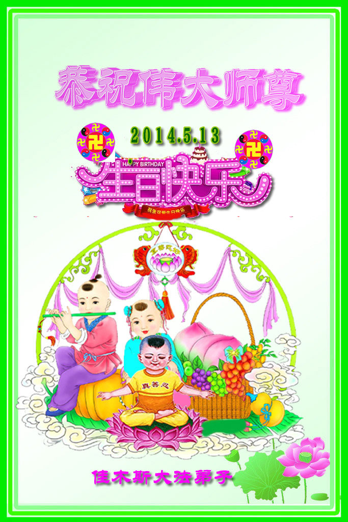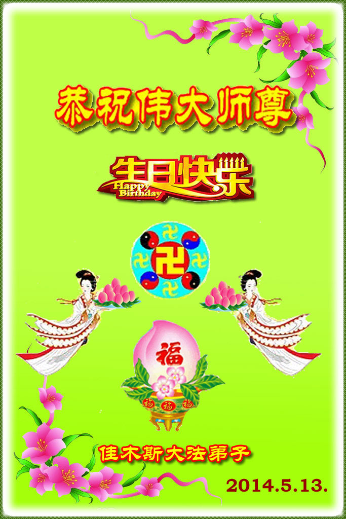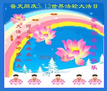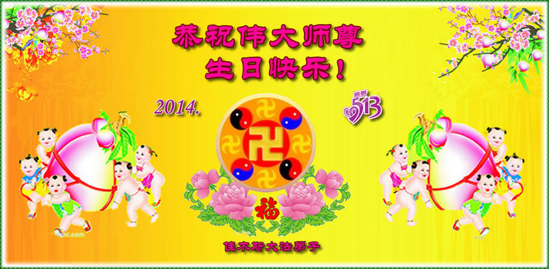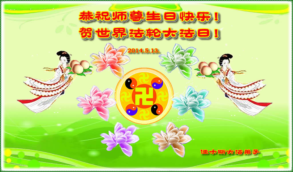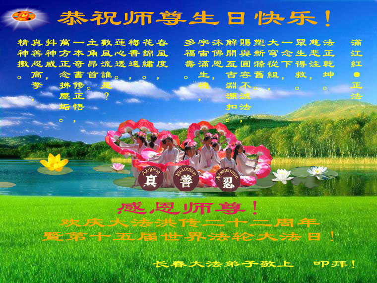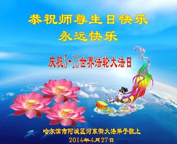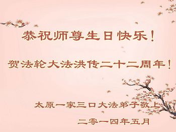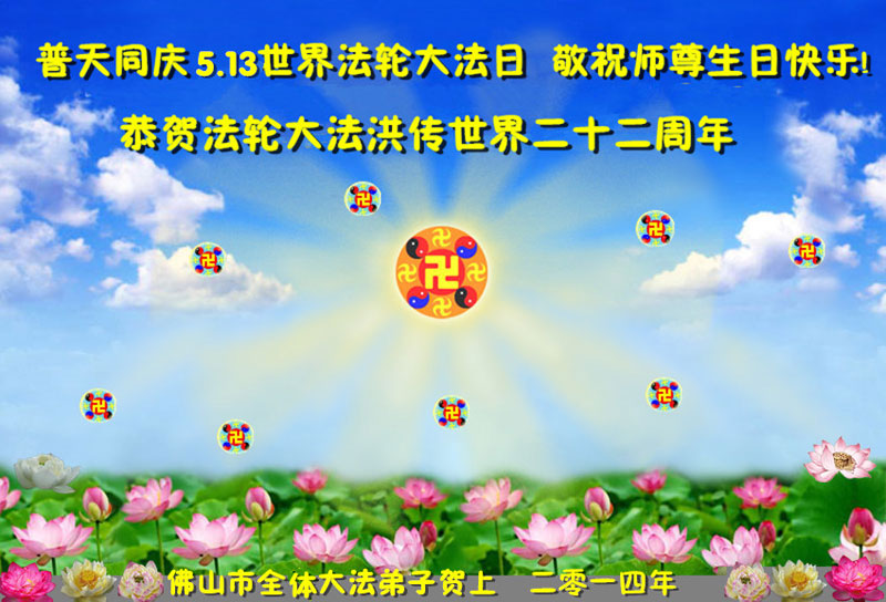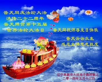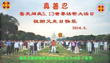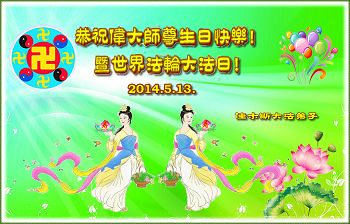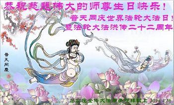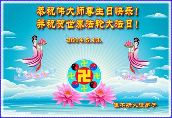 <英文版: http://en.d2s3ombhnov3zf.cloudfront.net/html/articles/2014/5/10/641.html>明真相世人恭贺大法洪传二十二周年暨师尊华诞(15条)
