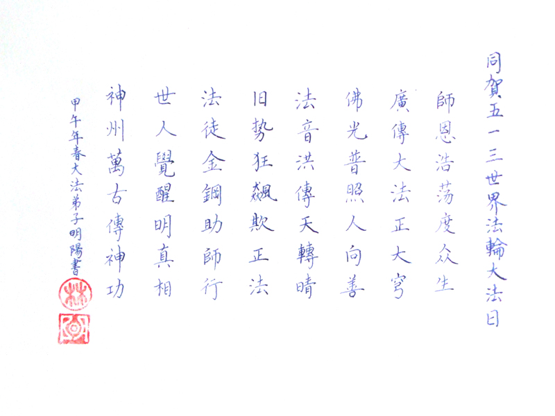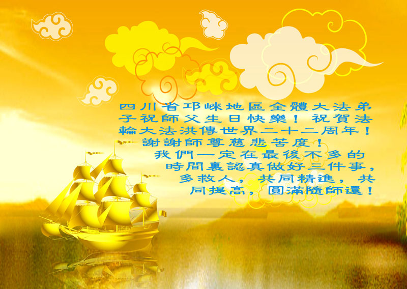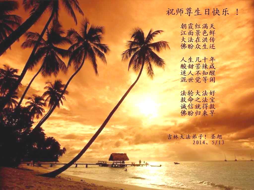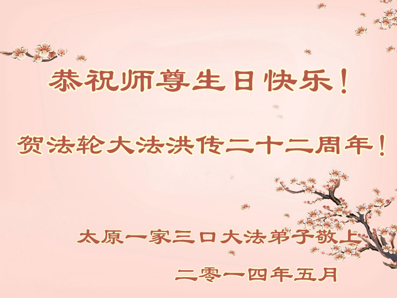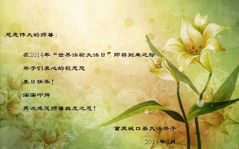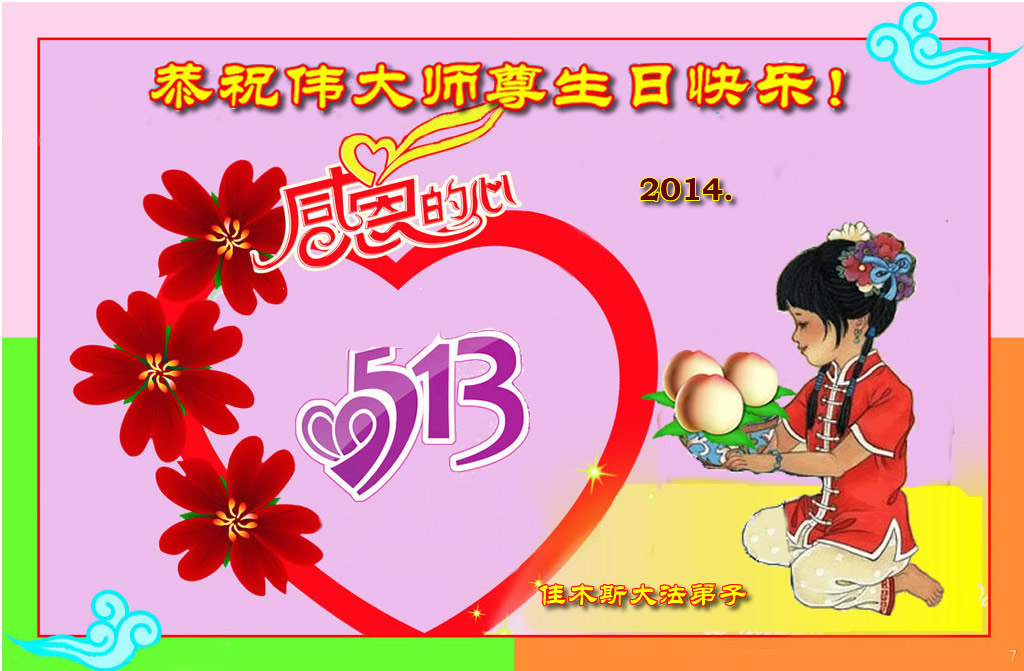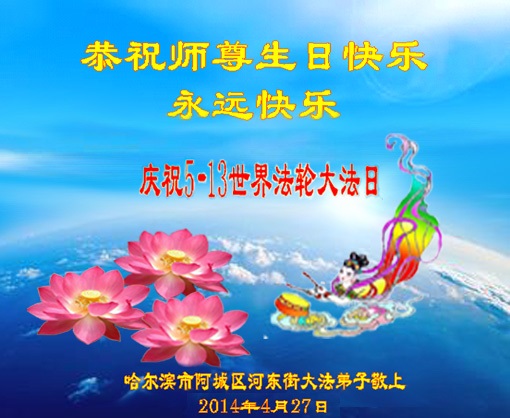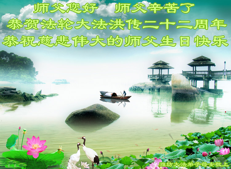 <英文版: http://en.d2s3ombhnov3zf.cloudfront.net/html/articles/2014/5/10/641.html>明真相世人恭贺大法洪传二十二周年暨师尊华诞(15条)
