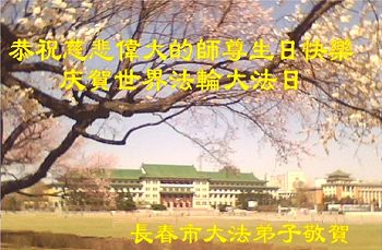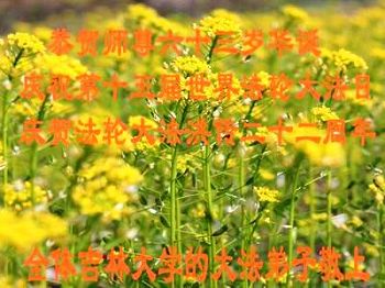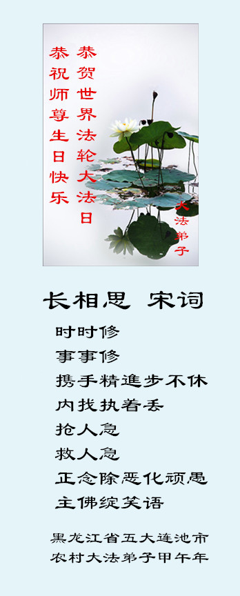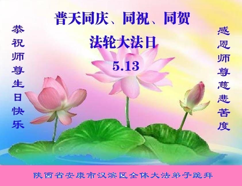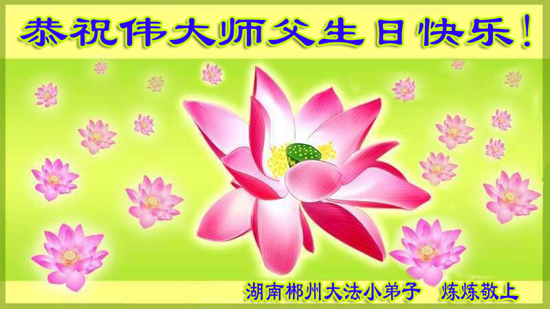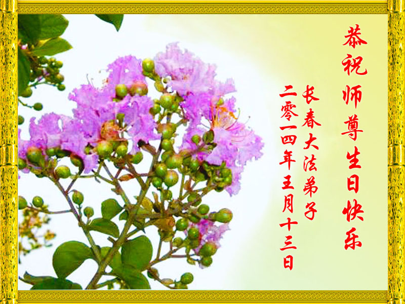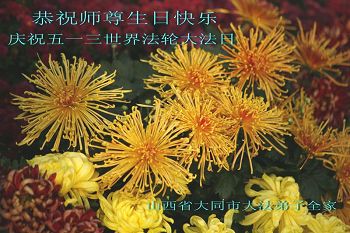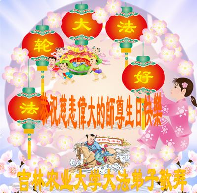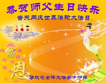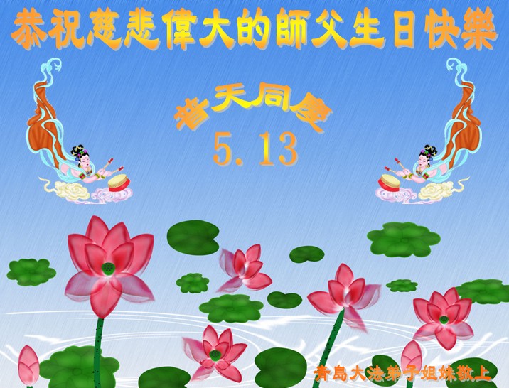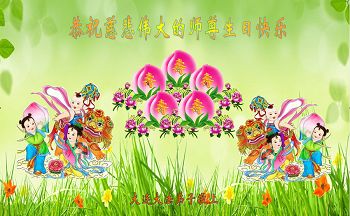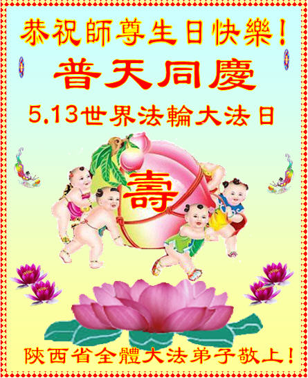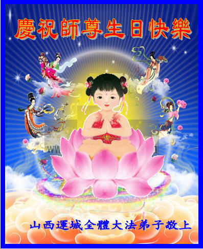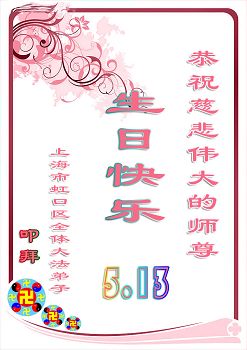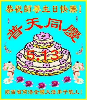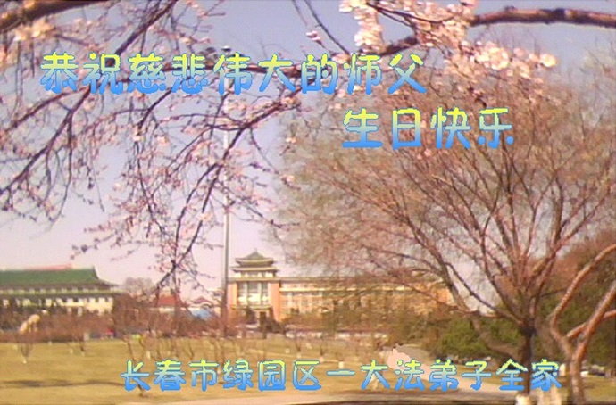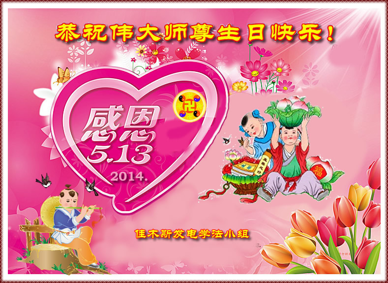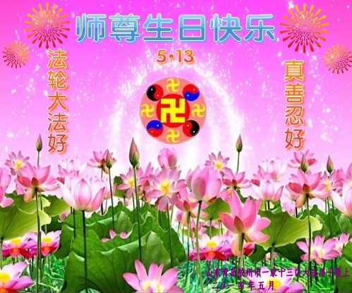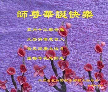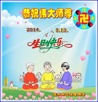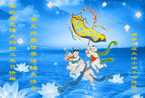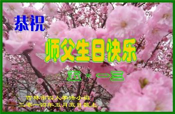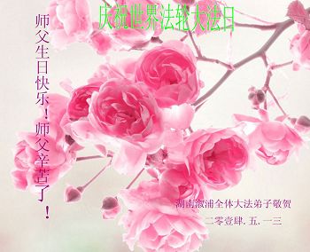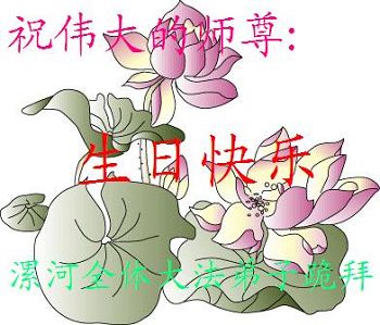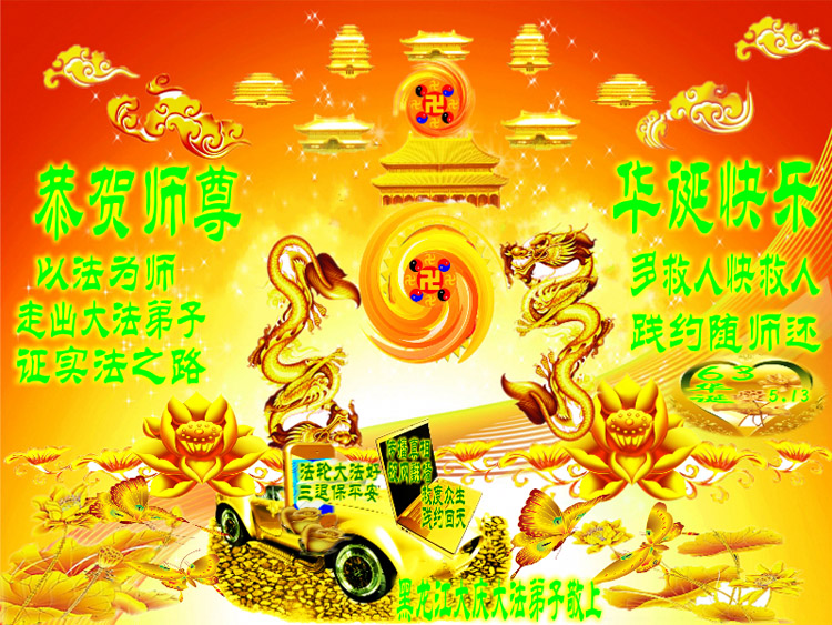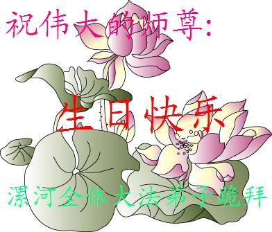 普天同庆的日子到来,我们没有什么可以敬献给伟大慈悲的李大师,唯有将内心诚挚的感恩化作缕缕春风送向大洋彼岸,真诚的祝福李大师生日快乐!我们期盼中共邪*党-早一天在中国大陆消失,恭迎李大师与法轮大法修炼者团聚!因为我们看到了他们那种想念师父的心情,那种久别以后期盼回到父母身边的思念无法用语言描述,同时也为我们自己祈祷,能够有天大的殊荣聆听慈悲的李大师为我们讲法。得救的生命跪拜慈悲伟大的李大师!