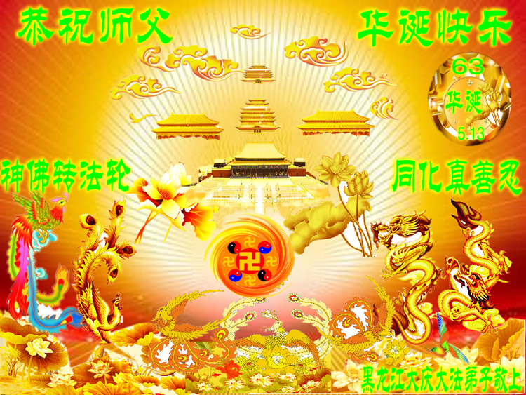 全世界只有大法师父最好!祝大法师父生日快乐!