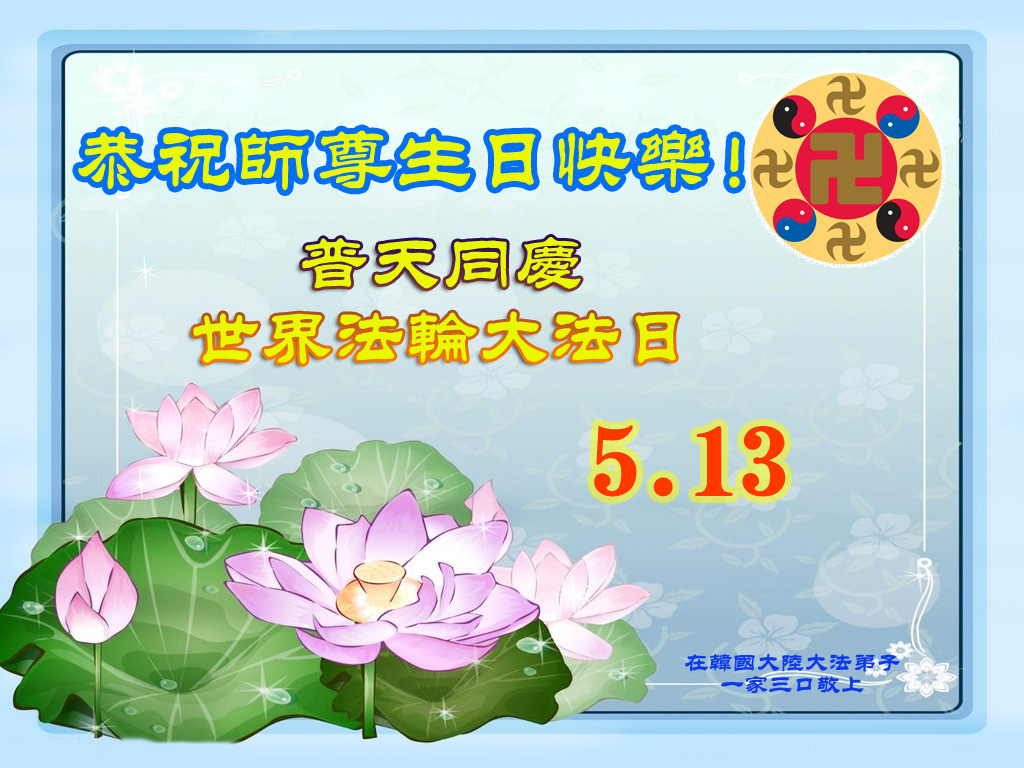 我们衷心感谢李大师对我们的慈悲救度!因为支持家人修炼法轮大法,我们也得到了李大师对我们的慈悲眷顾,我们也受益无穷!从大法修炼者身上我们看到了大法的美好和神奇!不仅为自己能够和大法弟子成为一家人而感到自豪和幸福!请慈悲的李大师放心,我们一定将法轮大法的福音传给更多的人,让更多的生命受益!