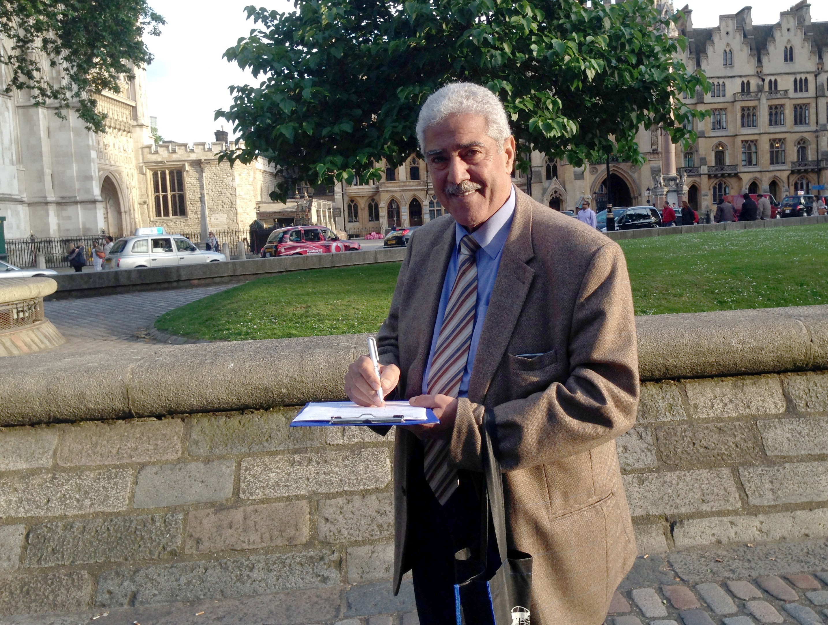 ![]() 图1:出席伦敦国际移植大会的埃及姆努菲亚大学全国肝病研究所负责人伊布拉海姆•马尔万(Ibraham Marwan)在反活摘征签表上签字 |