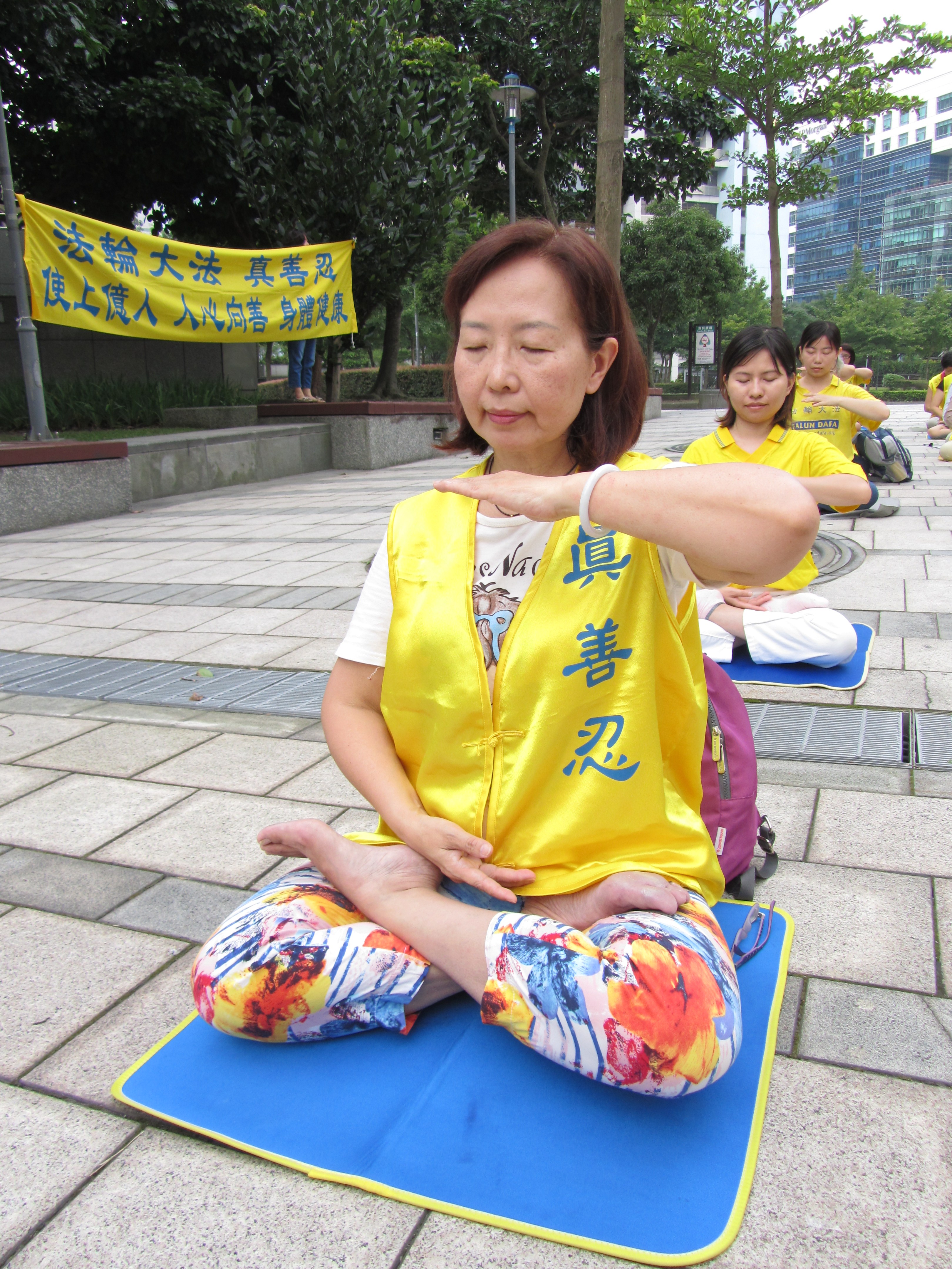 ![]() 图1.法轮功学员在台北信义广场上集体炼功 |