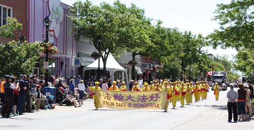 ![]() 多伦多法轮功学员组成的天国乐团和腰鼓队应邀参加十四日奥沙瓦(Oshawa)的多元文化节游行 |