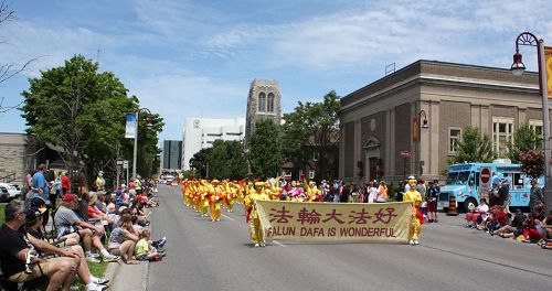 每当夏日之际,加拿大的大小城市都有很多种类的游行活动,多伦多法轮功学员多年来参加各种活动中都是最受欢迎的团体,给观众留下了难忘的印象,所以每年都收到很多邀请,为了不辜负组织者和观众的期待,他们都尽量安排时间参加。刚过去的周末就连续参加了三场的游行。