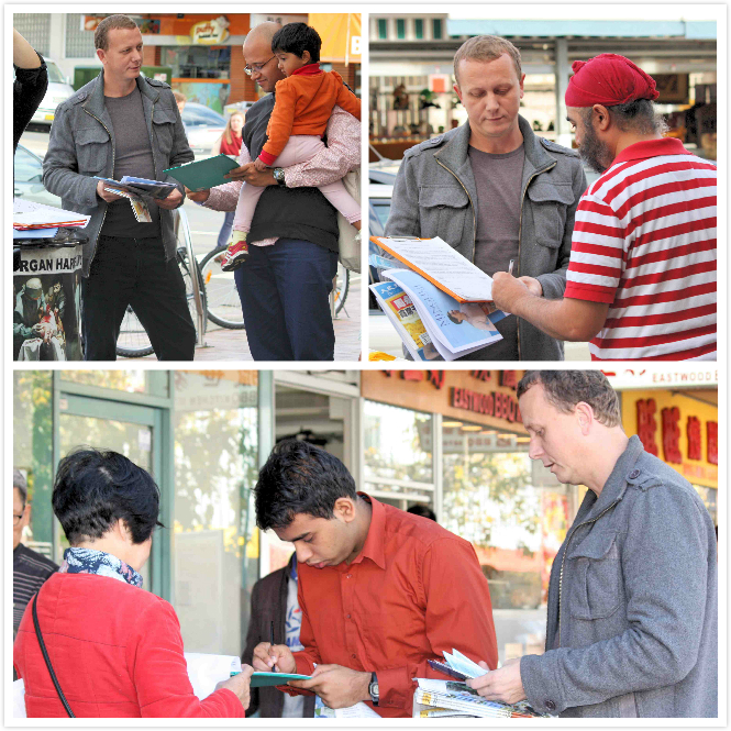 西人法轮功学员Marek告诉记者,有一对澳洲青年不但签了名支持立刻停止迫害、停止摘取法轮功学员器官后,他们表示:“之前听说过活摘,但不知详情,今天知道了真相,我们认为这不应该发生,中共不应该这么做。”最后他们说,他们会为这些被迫害的人站出来说话的。
