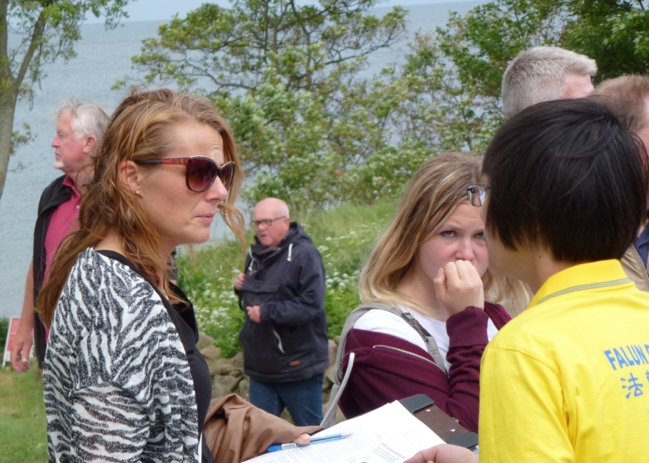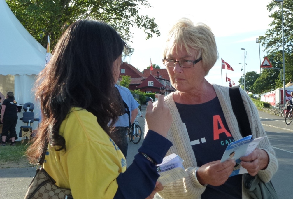 一名来自日德兰半岛奥胡斯市的女士,在征签表上签名后说:“我对这个功法感兴趣,我想学。”得到了相关的资料和联系方式后,她高兴地跟学员说:“我们再见”。