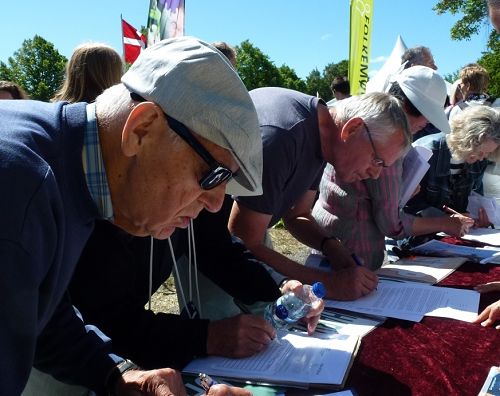 中共政权对法轮功学员的残酷迫害,以及活体摘取法轮功学员器官的罪恶远远超出了人们的想象和心理承载,了解真相的民众纷纷地在国际组织“医生反对强摘器官”(DAFOH)征签表格上签名,以及在给丹麦议员的公开信上签名。从十二日傍晚到十四日下午,相当于两天的时间内征集到五百二十个给DAFOH的签名,以及四百一十六个给丹麦议员公开信的签名。