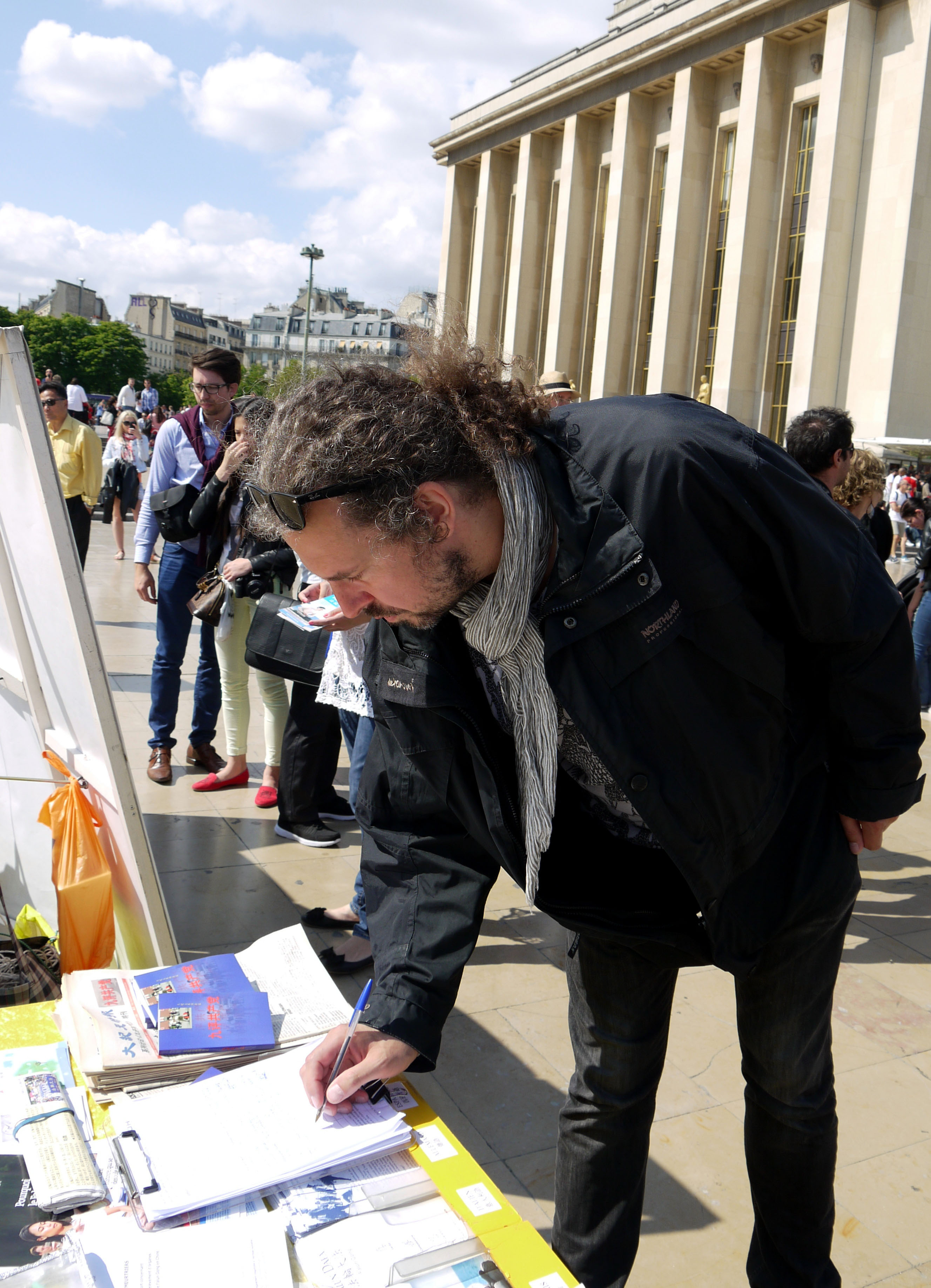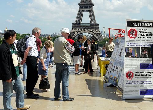 来自巴西的律师西得内·费雅斯(Sidnei Fias)前来巴黎旅行,在埃菲尔铁塔下遇见法轮功。这是他第一次听说和亲眼见到法轮功。他和法轮功学员聊了很长时间。法轮功学员向他介绍了什么是法轮功,并告诉他中共的迫害。当他得知,前中共党魁江××因妒嫉而迫害法轮功学员,被迫害致死法轮功学员中,验明身份的就有三千七百多人,中共使用各种酷刑折磨法轮功学员,甚至活体摘取法轮功学员器官,并以此牟取暴利,他非常震惊。他认为,活摘人体器官太残忍了,让人不敢相信。