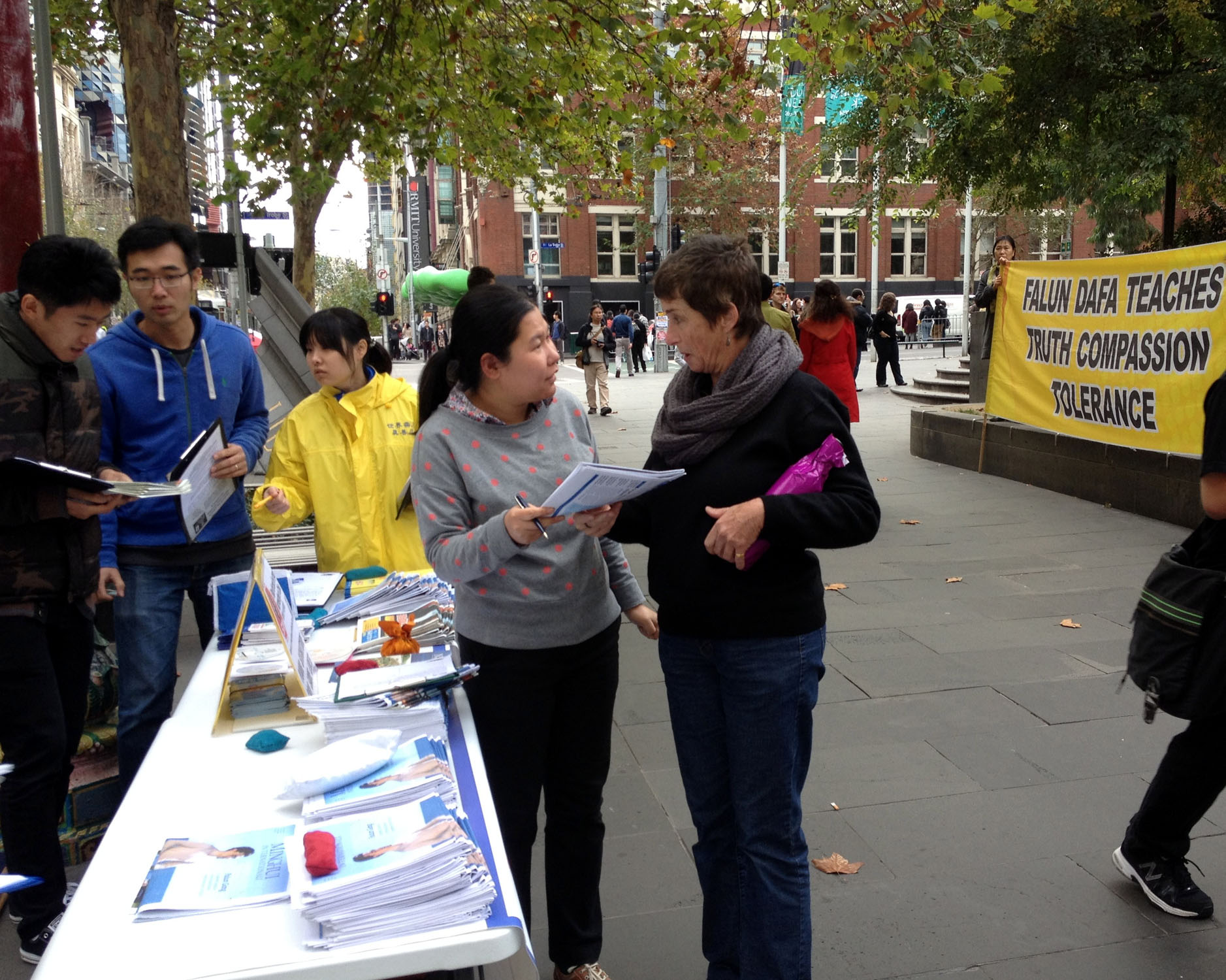 ![]() 了解了真相的墨尔本民众在征签表示签名支持法轮功学员的反迫害 |