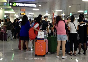 ![]() 图二、三、四:济州机场国际线到达厅里中国游客不断 |