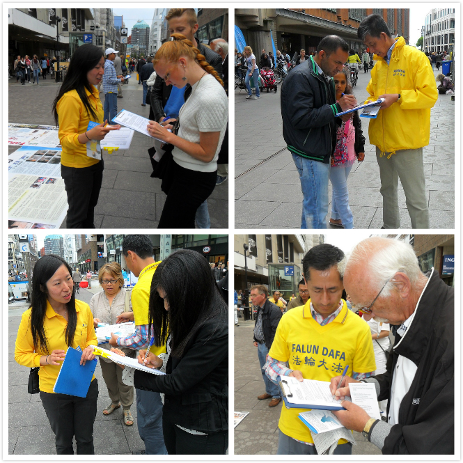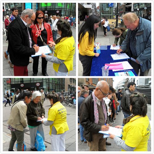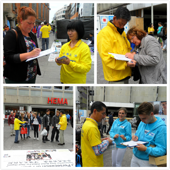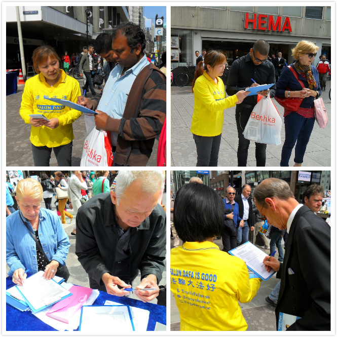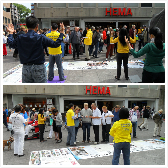 图片报道:荷兰法轮功学员在鹿特丹征签反迫害