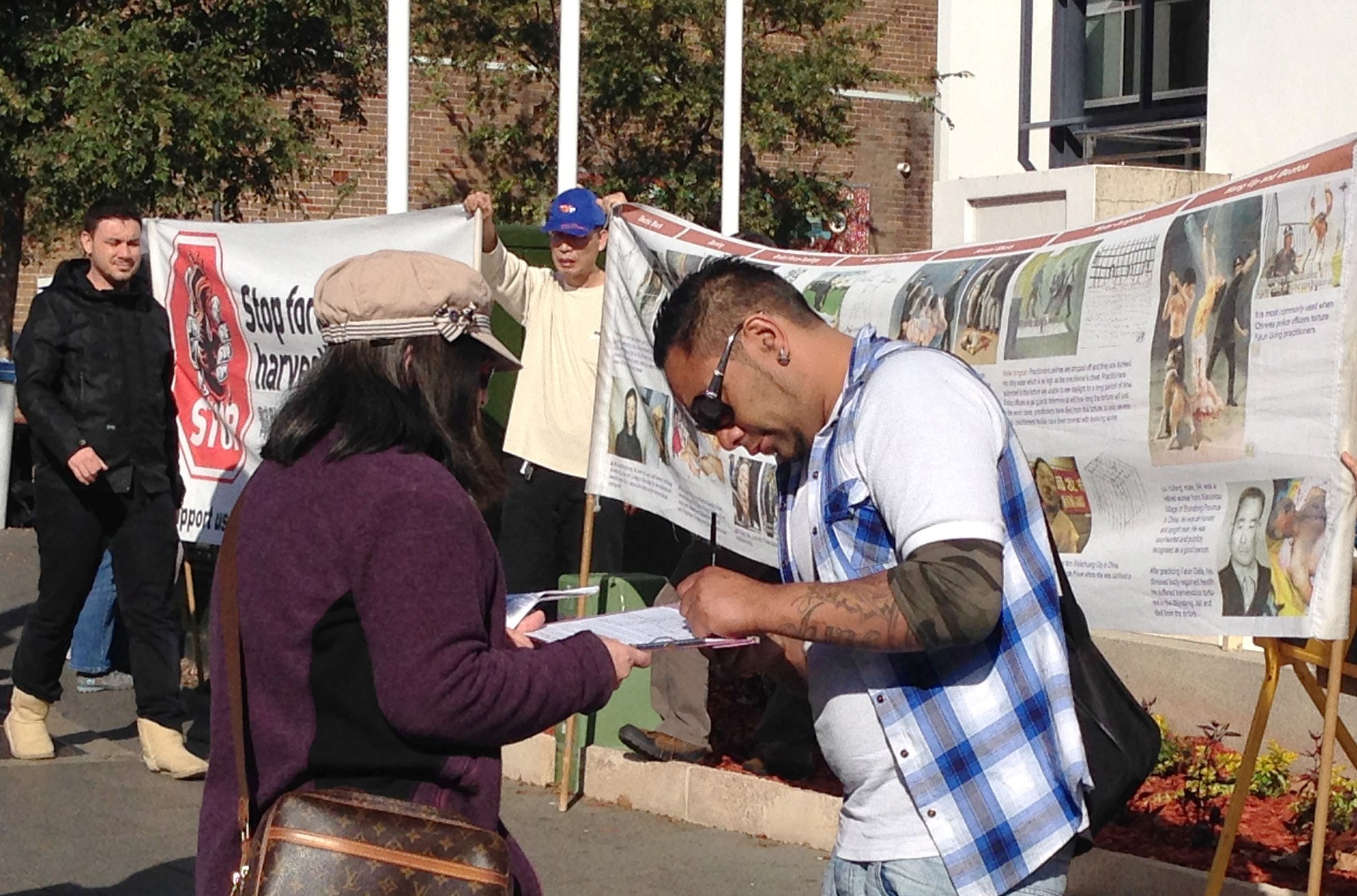 有一位上年纪的西人特地走过来对学员说,他已经签过名了,他非常支持法轮功学员反迫害。他说,你们做的是对的。共产党太邪恶了。他并表示自己一直在为那些遭受迫害的中国人祈祷。