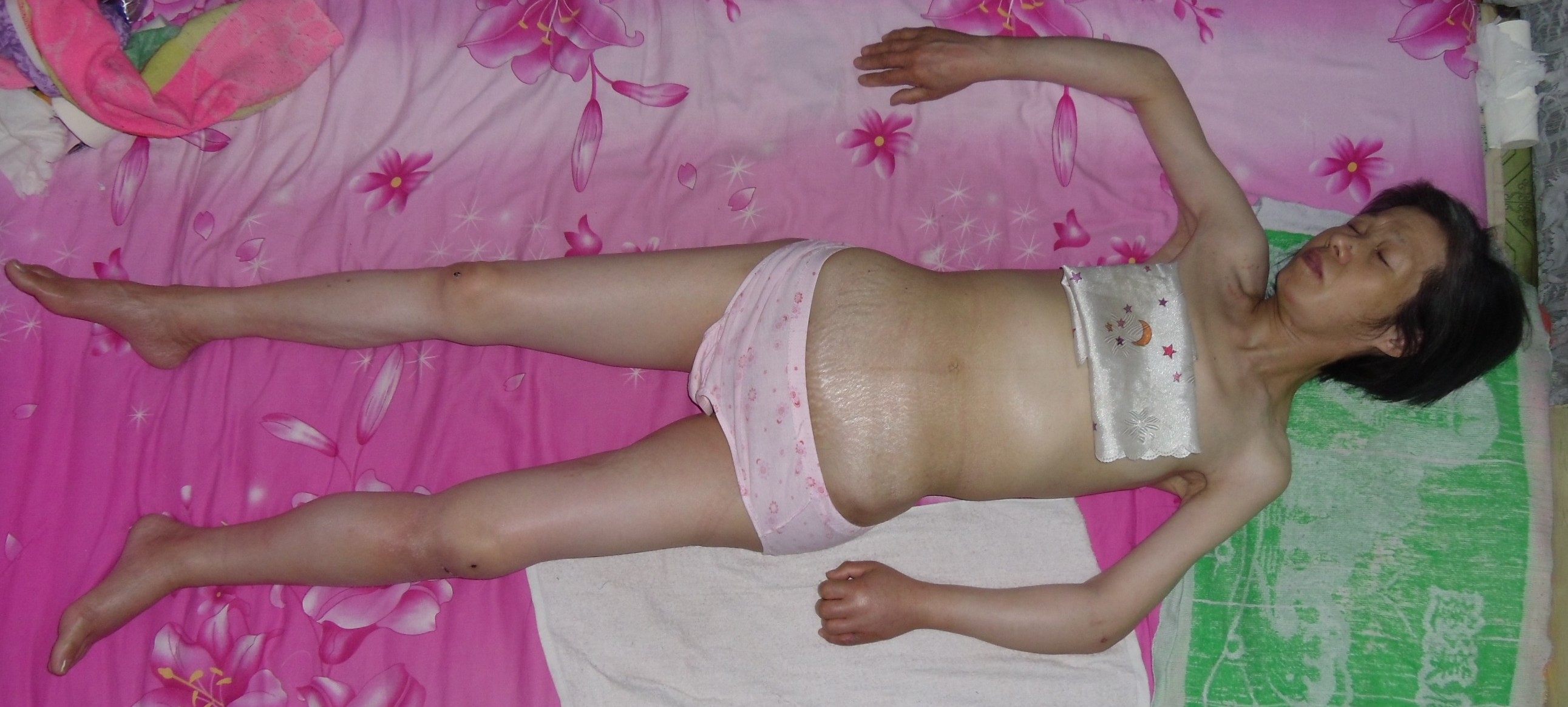 从五月二十六日开始,也就是里玉书出狱一个星期后,她突然站不起来了,站着就摔跟头,半个身子不好使,嘴和脸都歪斜,里玉书爬着去厕所,来回在地上爬,上不了床。