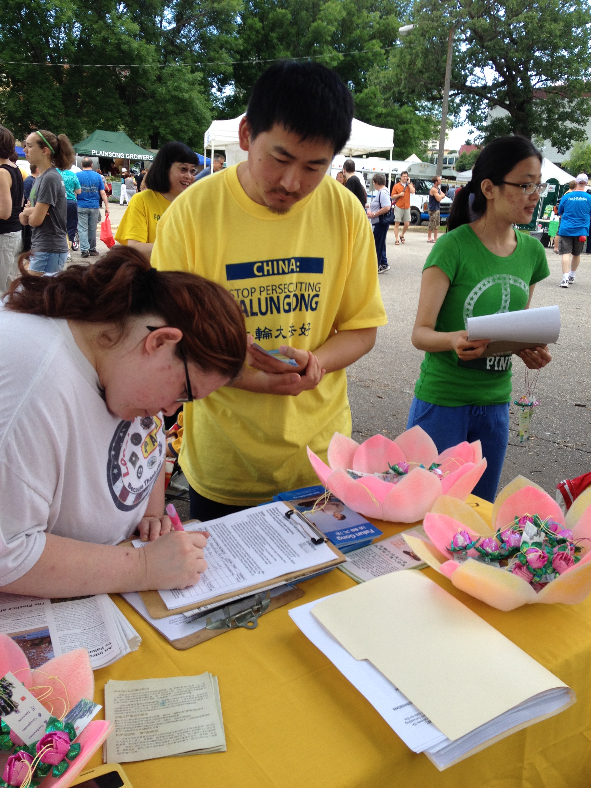 为了让这里的民众了解中共残酷迫害法轮功学员,甚至活摘法轮功学员器官的暴行,二零一四年六月二十一日,明州法轮功学员在罗切斯特市举办了讲真相与反活摘器官征签活动。