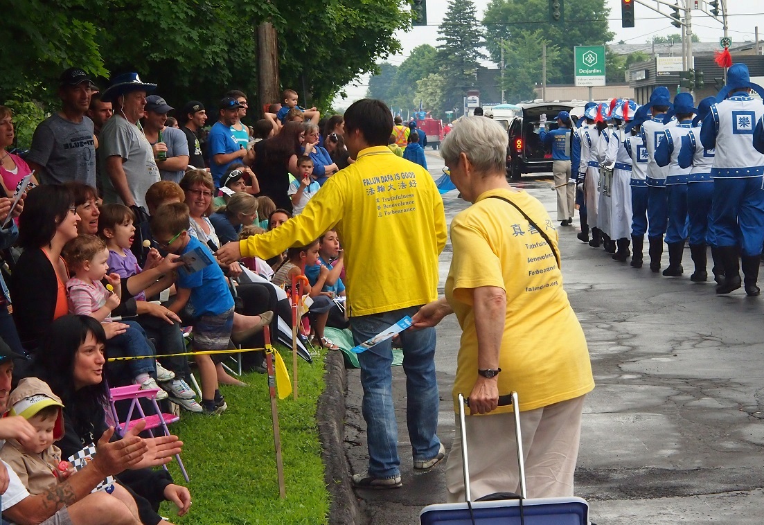 乔林•勒杜克(Jocelyn Leduc)曾经担任圣·让巴提斯组委会主席十四年,负责组织Valleyfield小镇的节日游行。“我非常高兴看到他们(天国乐团),因为非常非常美。我在组委会这么长时间以来,这是我头一次看到这么多成员的乐团,我非常喜欢他们的服饰,很传统。”他的太太蒂娜•勒杜克(Diane Leduc)补充说:“这是个美妙的乐团。我们很高兴看到华人,我们喜欢这些人。”