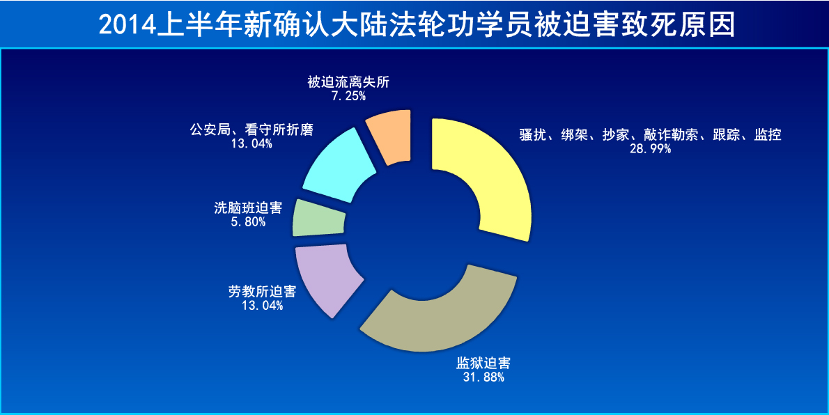 ![]() 图1:2014上半年新确认大陆法轮功学员被迫害致死原因 |