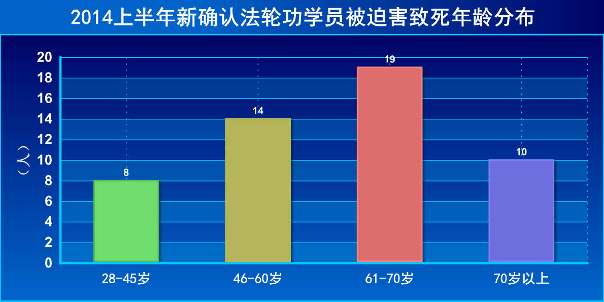 在2014上半年新确认被迫害致死的69名大陆法轮功学员中:
