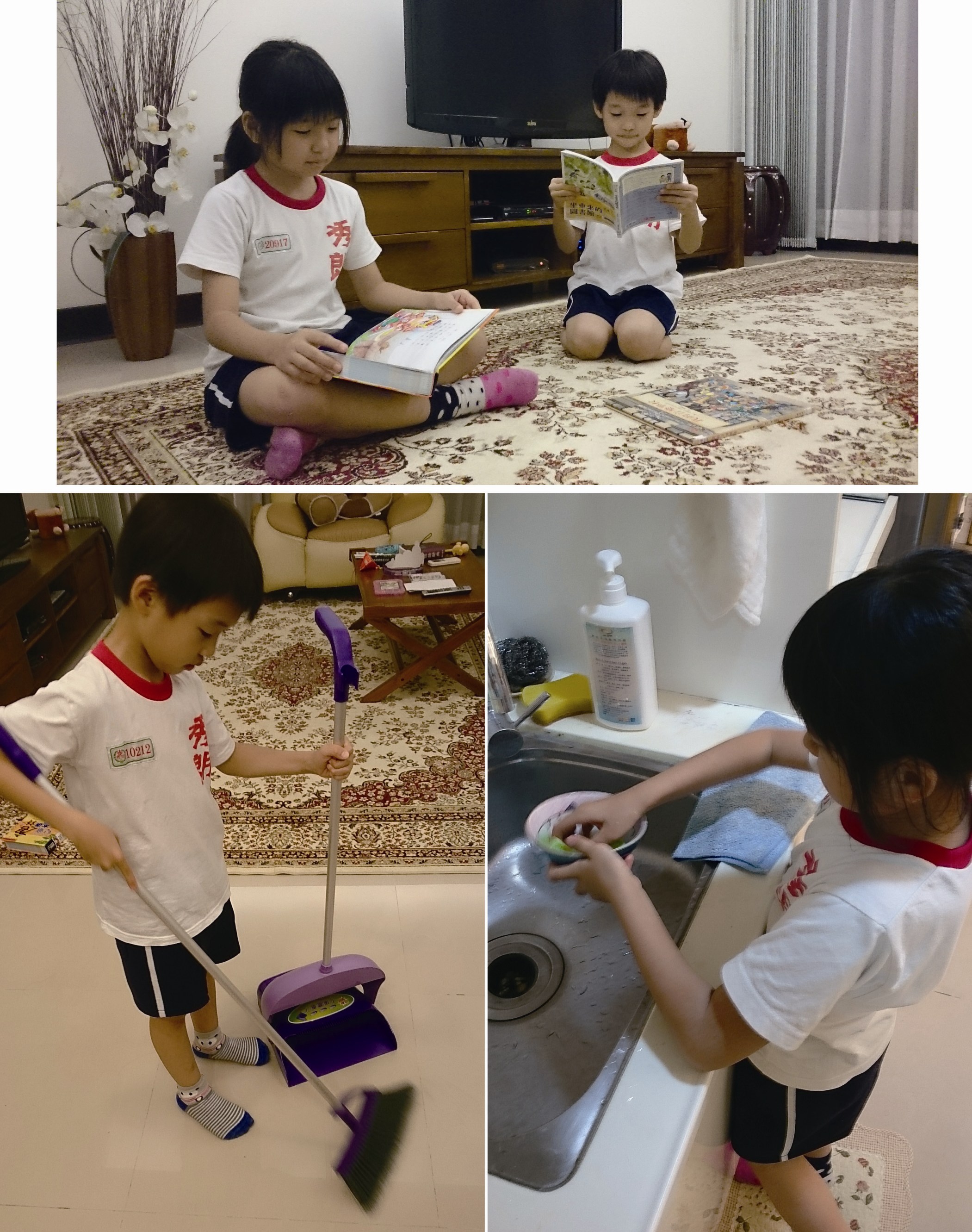 ![]() 图5. 心明、子明姐弟俩喜欢看优良读物,还会主动帮忙做家事。 |