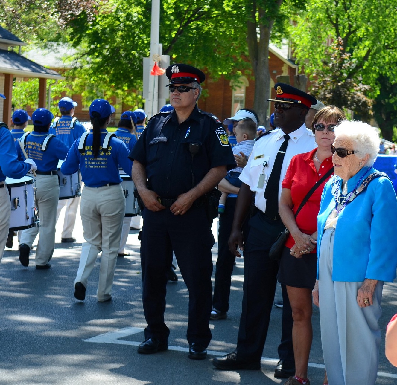 今年九十三岁的密市市长麦考莲(Hazel McCallion)在现场看完整个游行,她表示,感谢法轮功的天国乐团和腰鼓队多年来参加密市的游行,给密市的多元文化做出了很大贡献,给观众带来美好的信息。