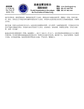 另外,法轮功学员还通过发放追.查!国际通告等资料,向其他中国代表讲真相,提醒他们别再做伤天害理的器官移植。