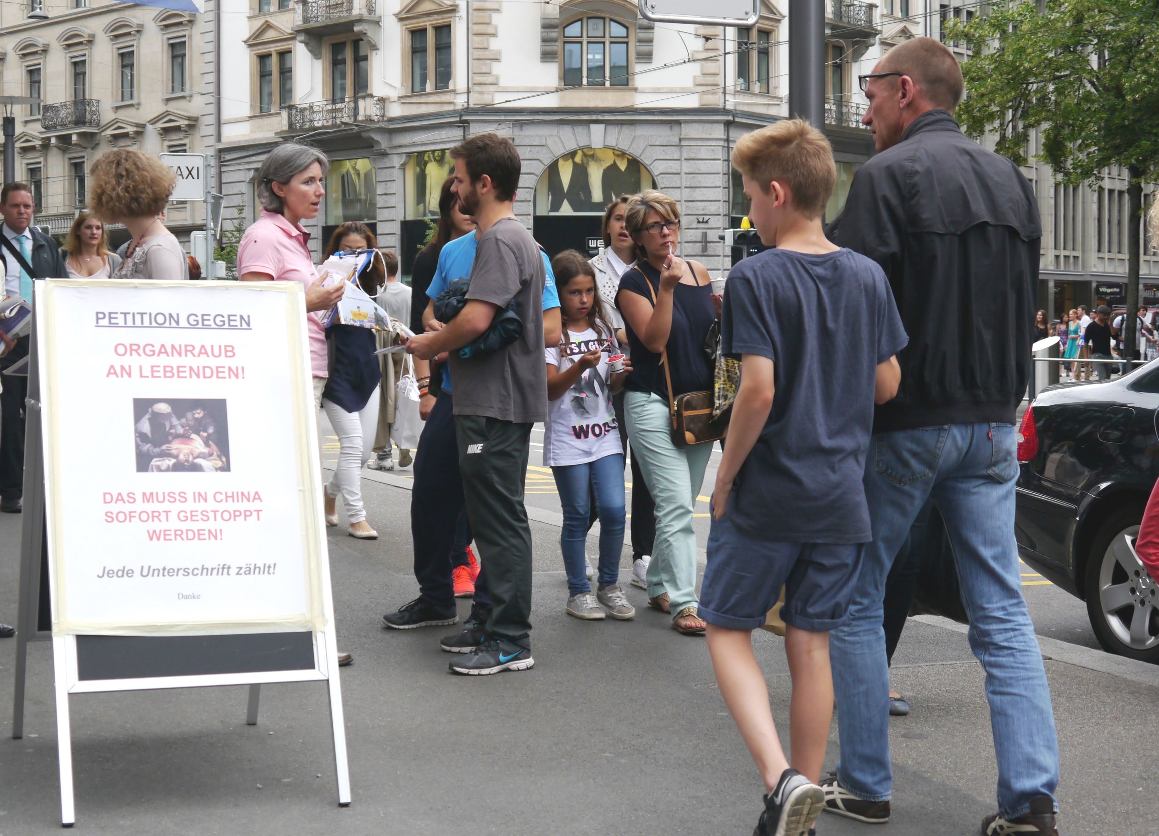 在苏黎世居住的Fidan夫妇曾经对法轮功学员受到的迫害有所了解。Fidan太太说:“活摘器官太可怕了,是不人道的行为,这根本不应该发生,应该被制止。因为我反对酷刑迫害,所以我签名,并希望通过我们的签名能给政治家们施加更多的压力,让他们采取行动来制止这场迫害。”