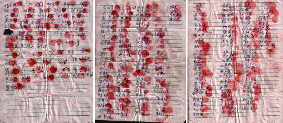 ![]() 当地乡亲声援法轮功学员白贵银的签名及手印 |