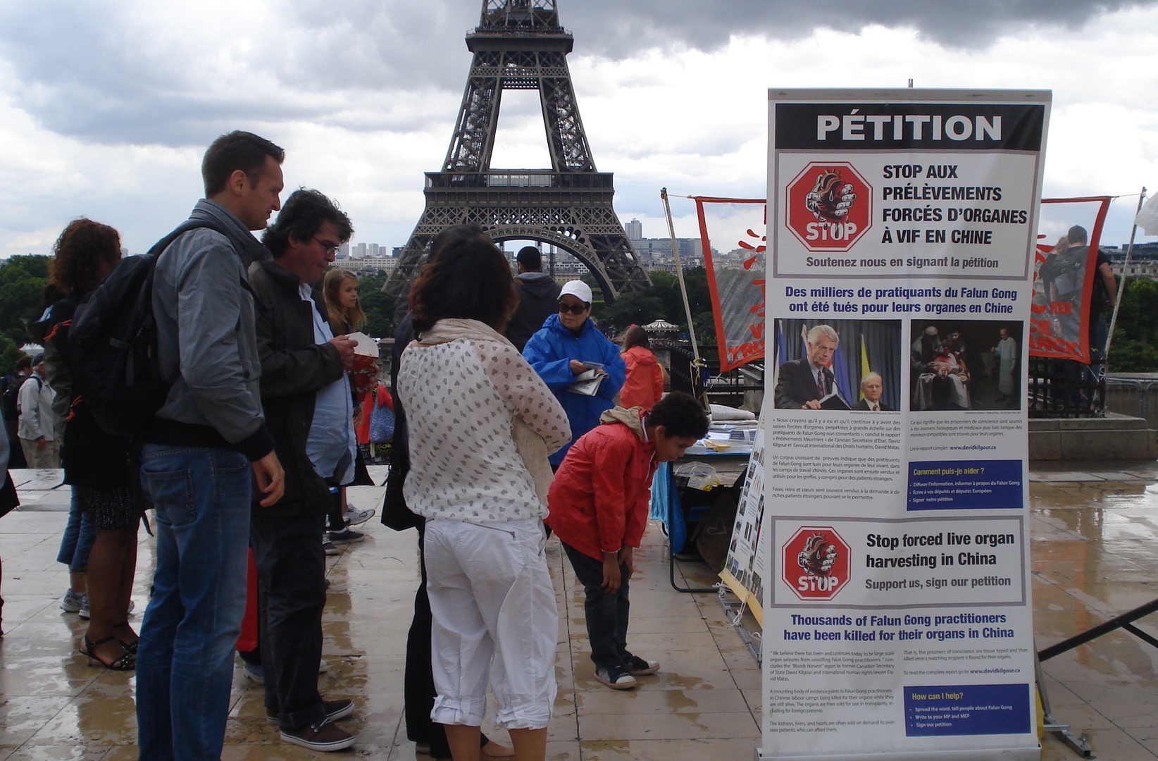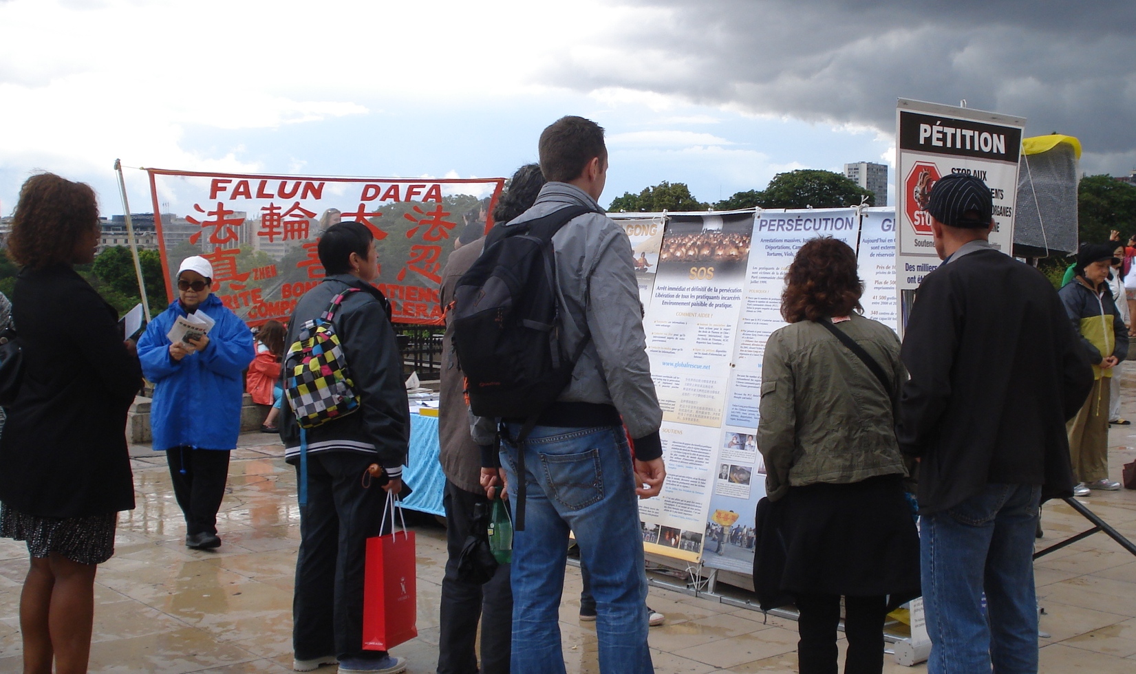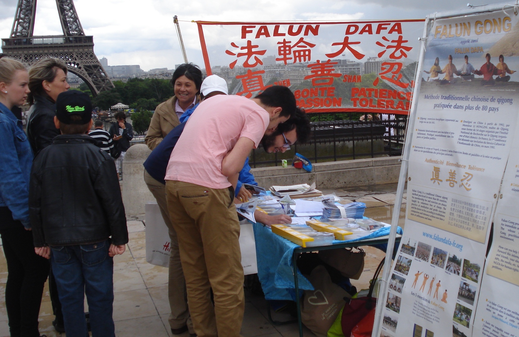 十多年来,每个星期日的下午,法轮功学员都在人权广场举办讲真相活动。现场悬挂着“法轮大法 真善忍”的横幅,摆放着真相展板,学员们演示功法,讲真相,征集签名反迫害,成了这一著名旅游景点的亮丽风景,让来自世界各地的游客有机会了解法轮功真相,很多法国民众也是从这里听闻法轮功,有些人之后走上了修炼之路。