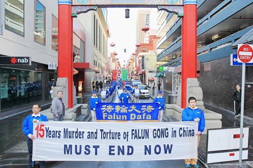 ![]() 图1-7:墨尔本法轮功学员在市中心游行,纪念和平反迫害十五周年 |