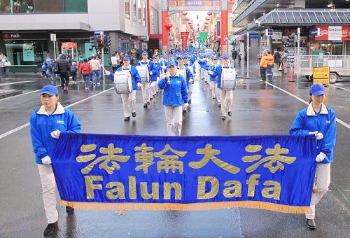 位于南半球的墨尔本时值冬季,七月十二日星期六当天天气寒冷,风雨交加,但无论是游行还是近三小时的集会,法轮功学员依然神采奕奕,向世人展现出大法弟子和平、理性、美好的风貌,以及在反迫害中不畏狂风暴雨的勇气和坚忍。
