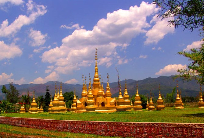 西双版纳辖景洪市、勐海县、勐腊县和十一个国营农场,常住人口八十四万人。这里聚居着傣、哈尼、拉祜、布朗、基诺等十三个少数民族,占全州人口的百分之七十四。这里的傣族、布朗族全民信仰小乘佛教,是释迦牟尼当年传法度人的地方,人称“佛国圣地”。