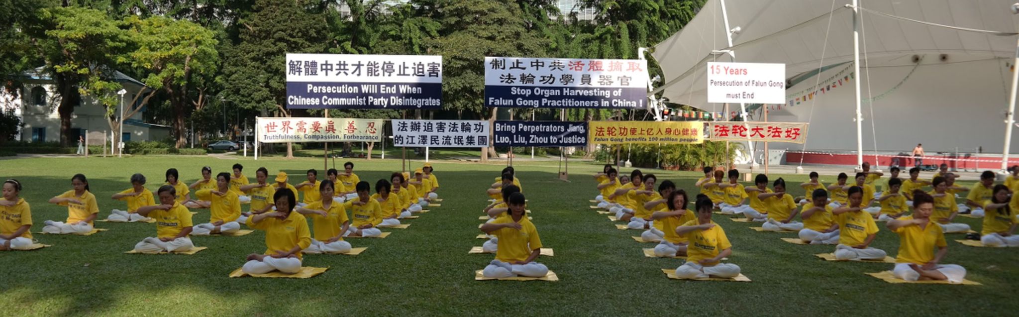 新加坡法轮佛学会发言人谢先生在集会上说:“十五年前的一九九九年七月二十日,前中共党魁江泽民悍然发动了对上亿法轮功民众的残酷镇压运动。”