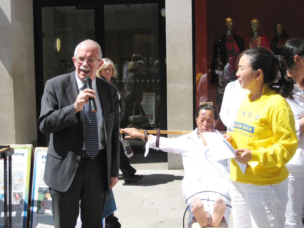 ![]() 图4:爱尔兰中部议员谢默斯•希利来到集会现场,发言支持法轮功,呼吁立即停止迫害。 |