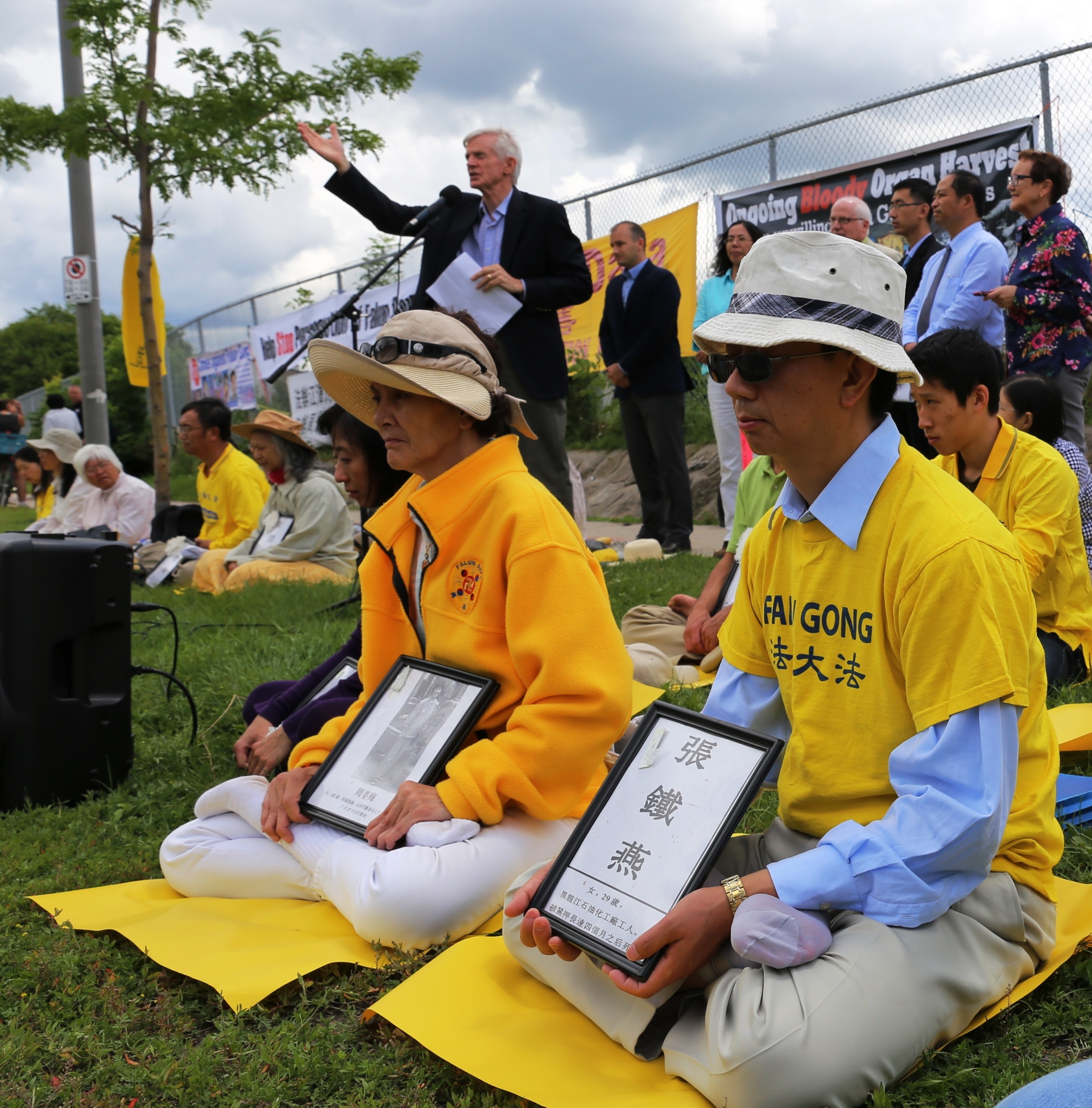 从二零零六年开始就和国际人权律师大卫•麦塔斯一起对中共活摘法轮功学员器官的罪行进行独立调查的前加拿大亚太司司长大卫•乔高也来到现场表示支持法轮功。