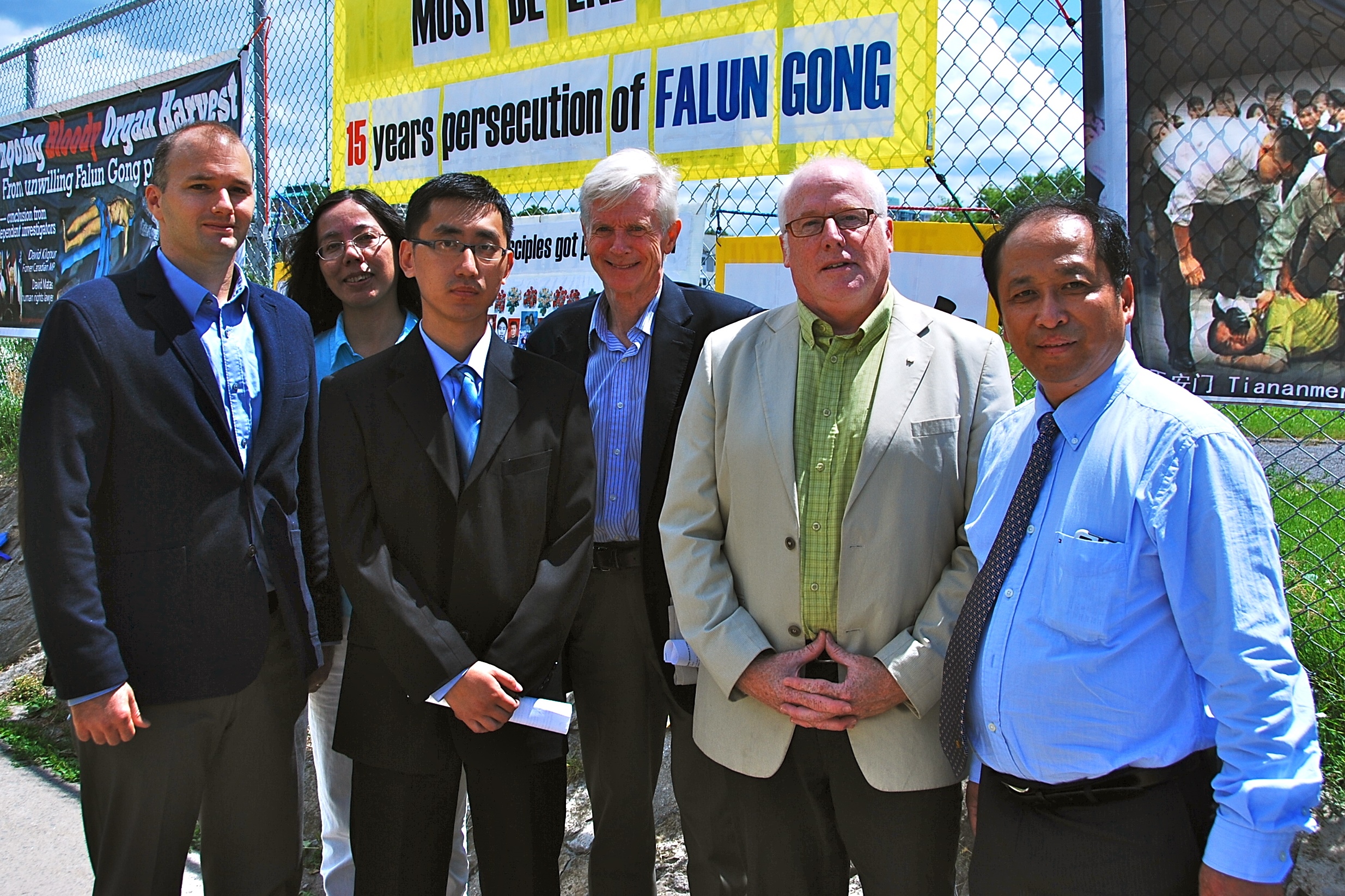 ![]() 大赦国际加拿大主席阿历克斯•尼夫(右二)和加拿大前资深国会议员大卫•乔高(右三)到集会现场声援法轮功 |